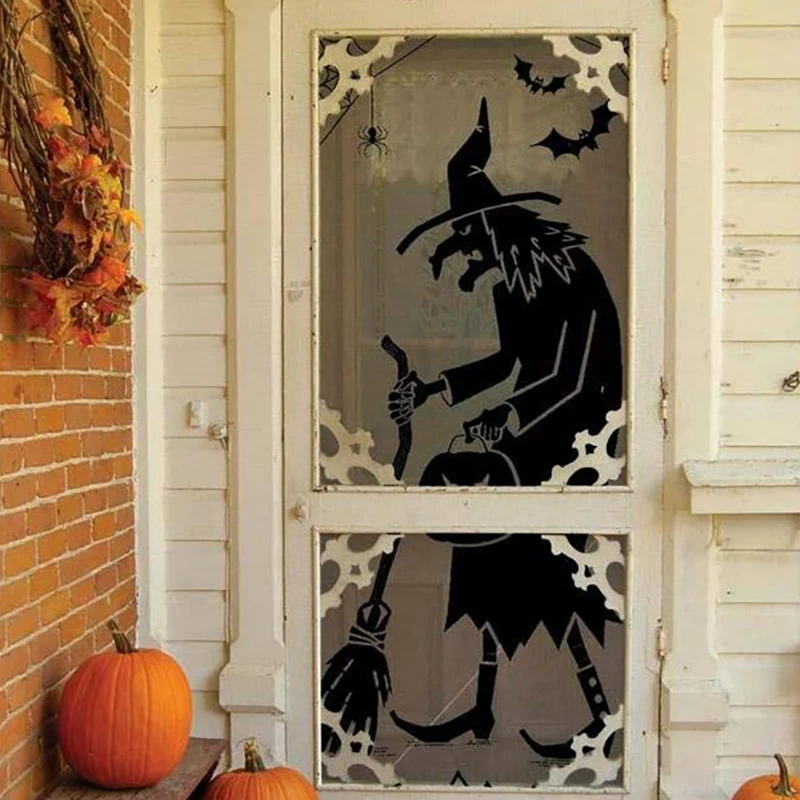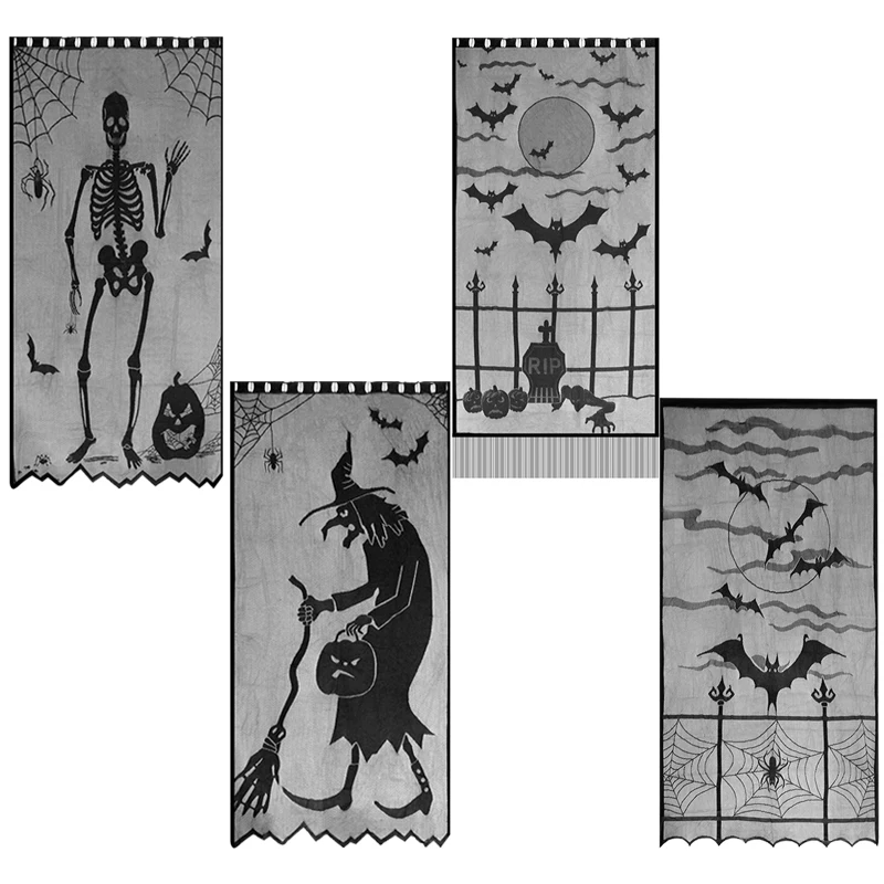 Черная кружевная скатерть Hallowen, занавеска, ужас, скелет ведьмы, летучая мышь, украшение для двери, для праздновечерние Хэллоуина, дома, декоративный реквизит