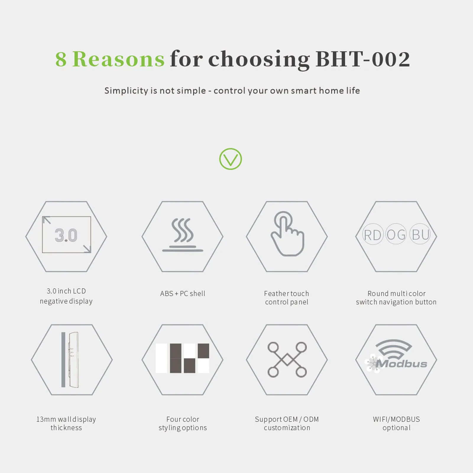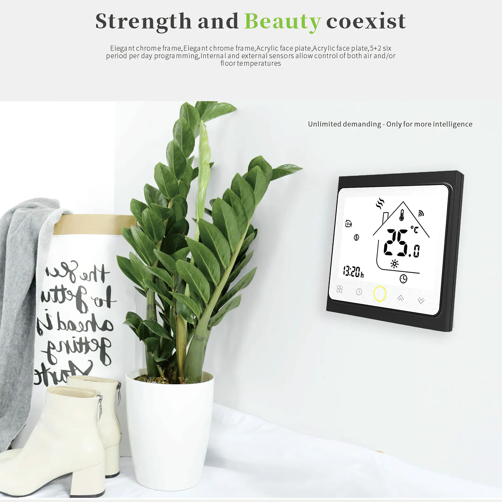 Настенный термостат Tuya Wi-Fi может быть подключен к нескольким смарт-устройствам и может использоваться с другими устройствами, поддерживающими Tuya, для достижения общей связи, которая очень подходит для вилл.