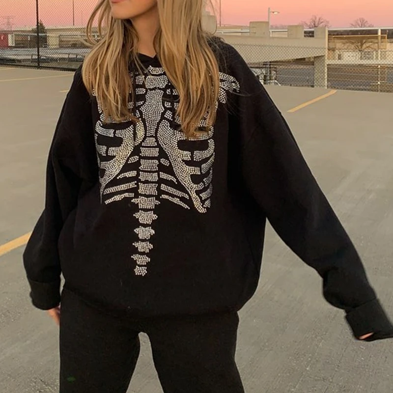 Стразы толстовки со скелетом женские толстовки на молнии оверсайз у...