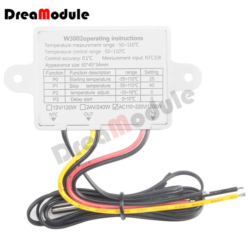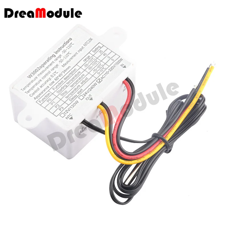 W3001 светодиодный цифровой термостат регулятор температуры DC12V 24V AC110V-220V терморегулятор контроль нагрева NTC 10K кабель