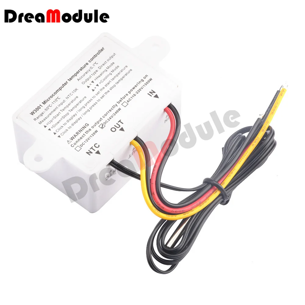 W3001 светодиодный цифровой термостат с контролем температуры, 12 В постоянного тока, 24 В, AC110V-220V, терморегулятор, управление охлаждением, кабель NTC 10K