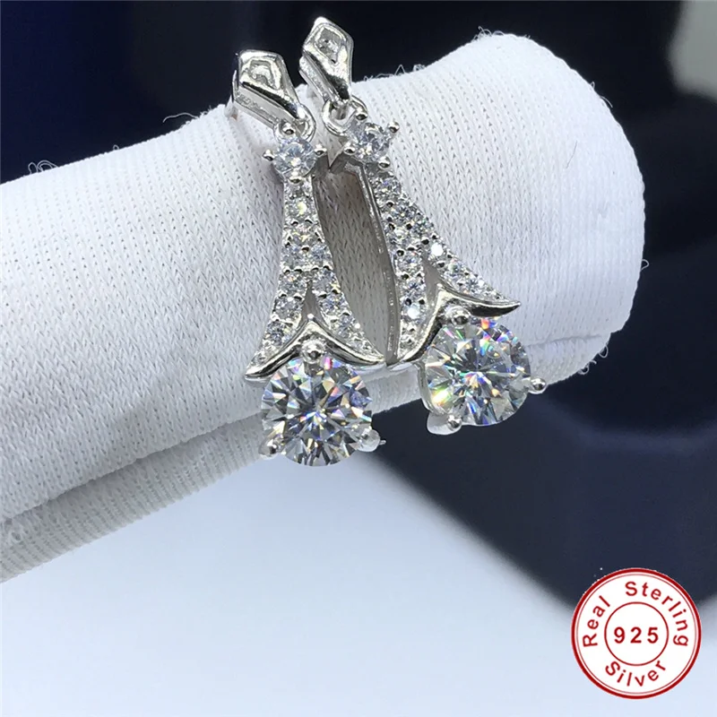 Серьги-подвески Geoki женские из серебра 925 пробы с муассанитом 1 карат