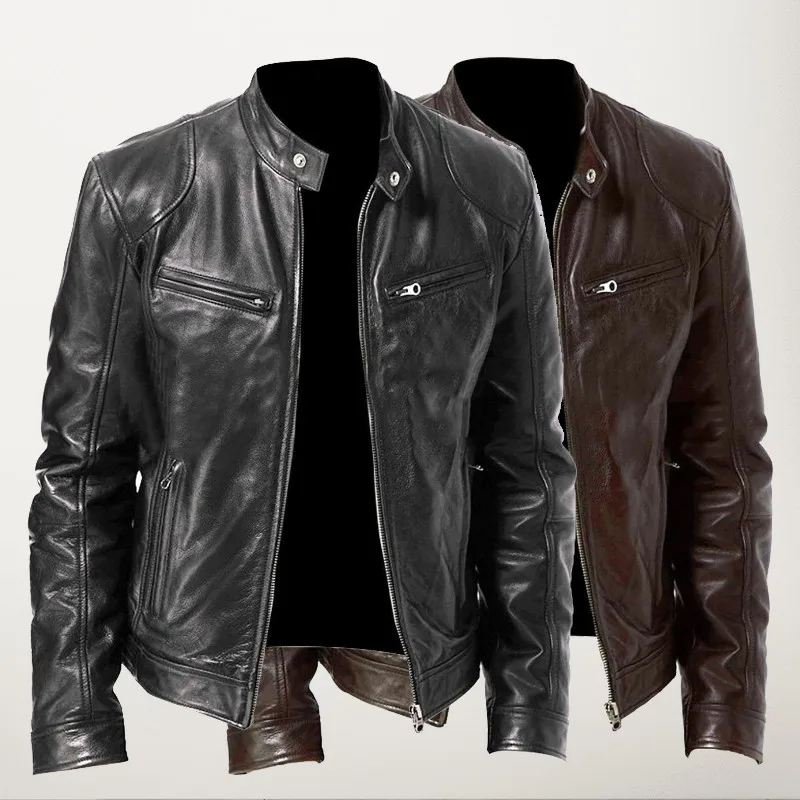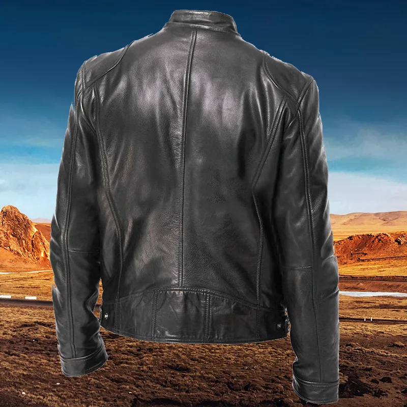 Мужская кожаная куртка с воротником-стойкой, на весну и осень