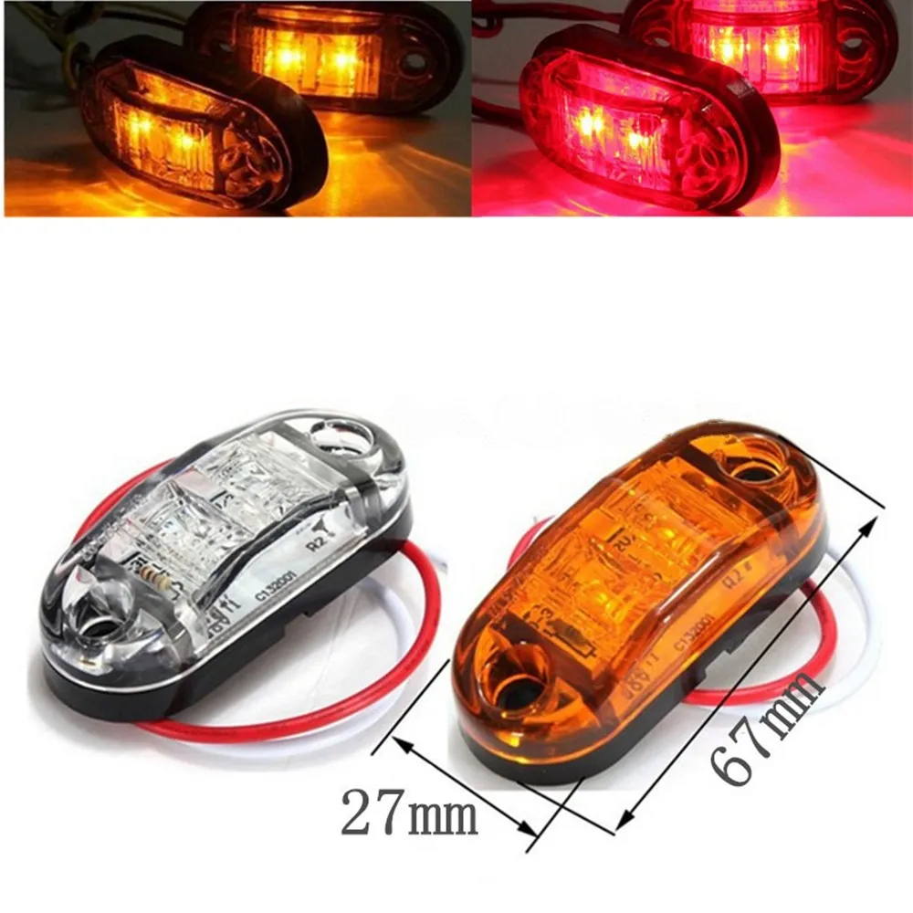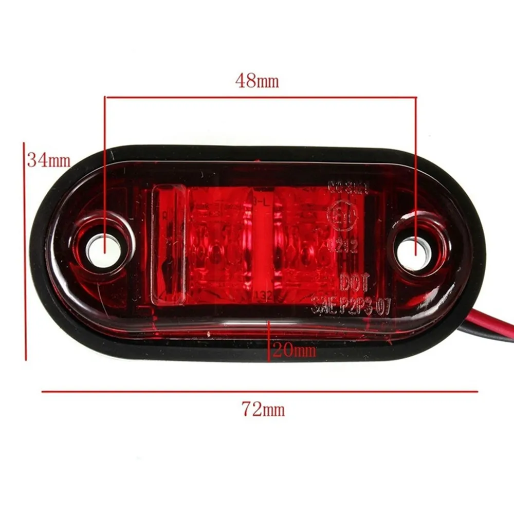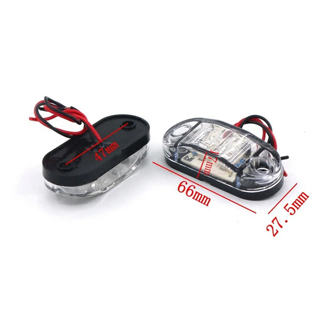 Specification:Condition: 100% Brand NewColor:WhiteLamp Type: LEDLumen:500LMPower:5WLED's quantity per light: 2xMaterial: Durable plasticLight Color: WhiteVoltage: 9-30V (can be used for 12V/24V)Size: 6.5*2.8*1.2cm(LxWxH)Wire length: approx. 18cmDistance between two fixing holes: 5cmWiring: 2 (Yellow & Black)White wire : positive poleBlack: negative pole Package Included:1pcs x Side Marker Light2x Screws