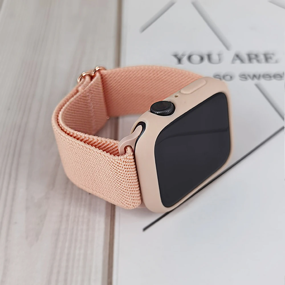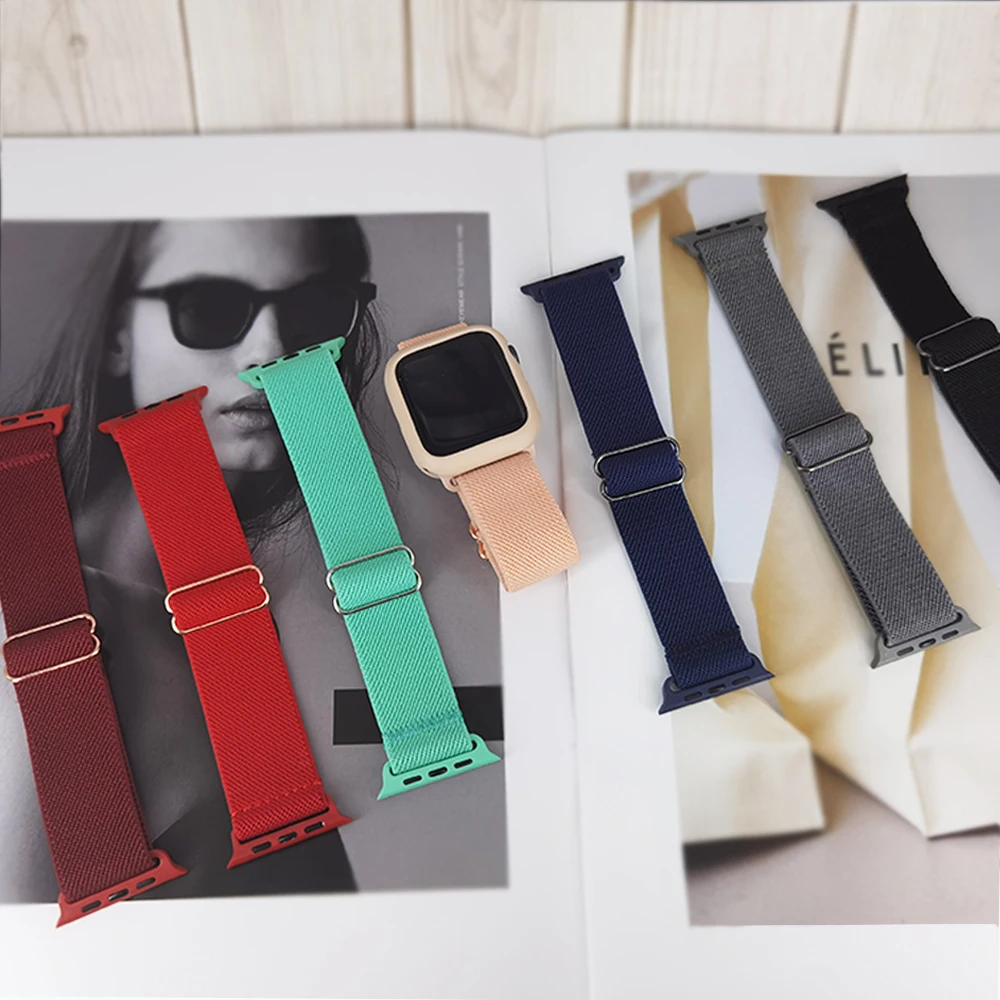Эластичный нейлоновый ремешок для смарт-часов Apple Watch SE Series 6, 5, 4, 3 + чехол для браслета iWatch 40 мм, 44 мм, 38 мм, 42 мм
