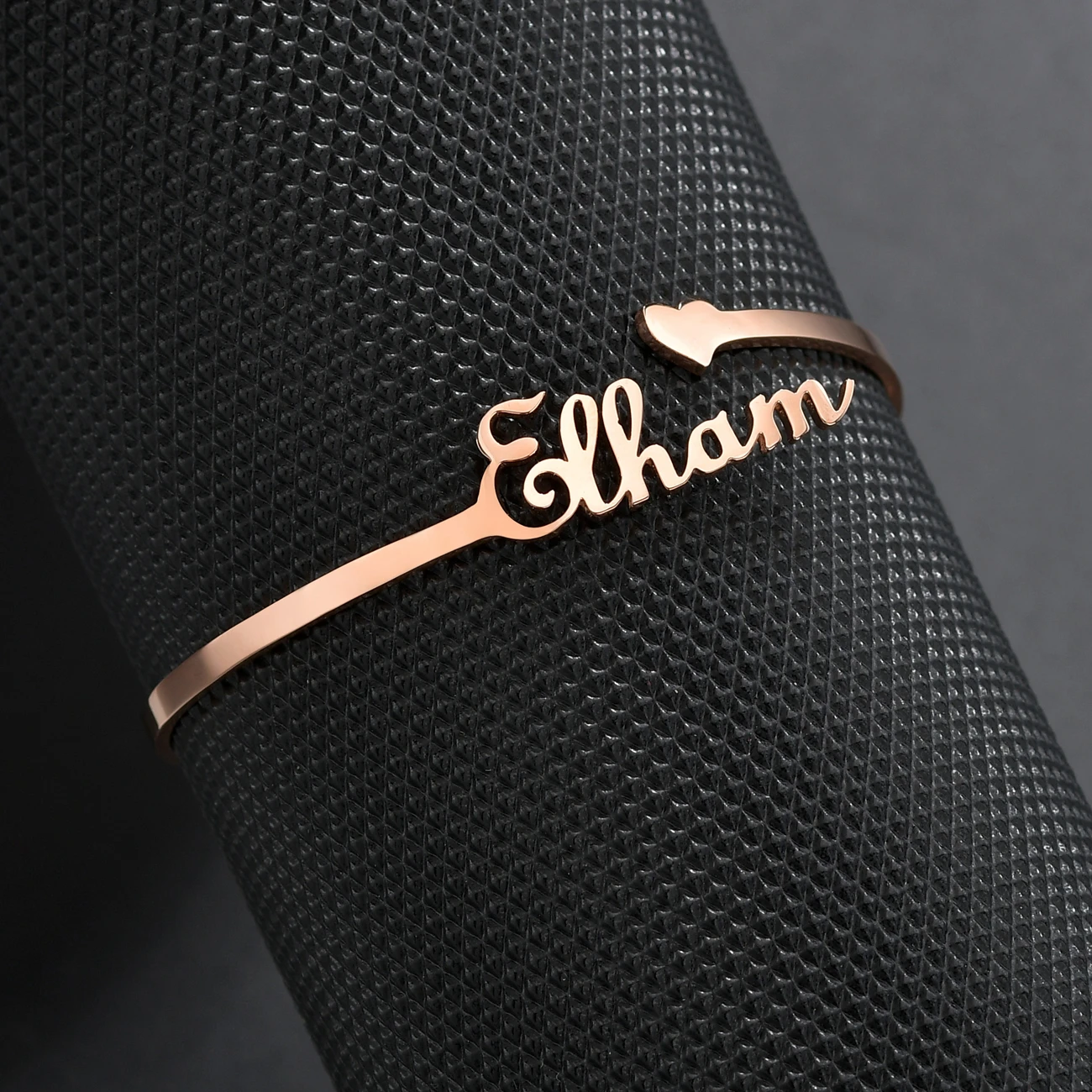 Браслет женский золотистый из нержавеющей стали, с именем на заказ