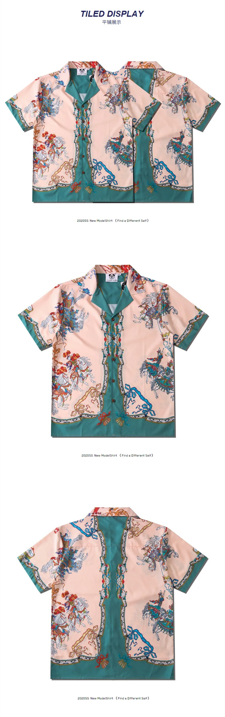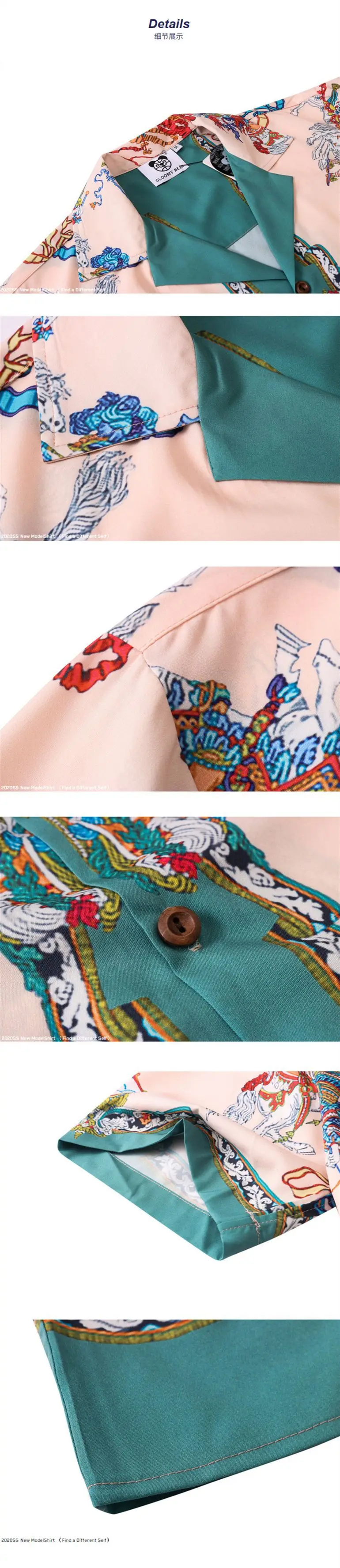 Рубашка мужская с цветочным принтом, Повседневная модная тонкая свободная пляжная сорочка с отложным воротником, в гавайском стиле, с коротким рукавом, в стиле Харадзюку, лето 2021
