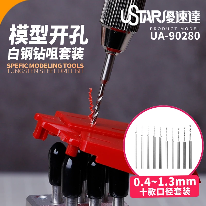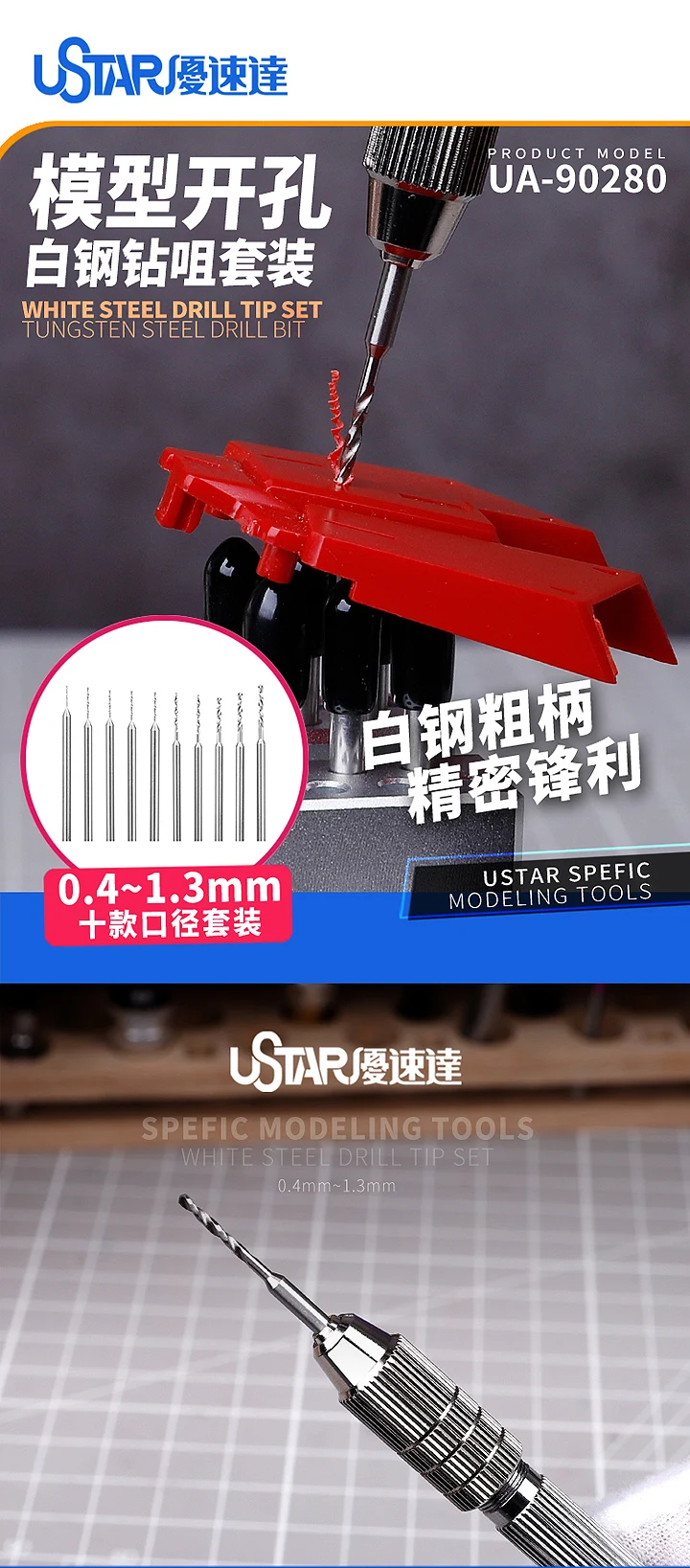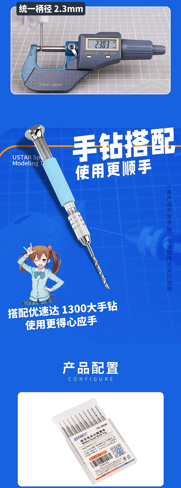 Сверла стальные Ustar 90280, белые, 0,4 1,3 мм (диаметр хвостовика 2,3 мм) для моделирования, моделирования, хобби