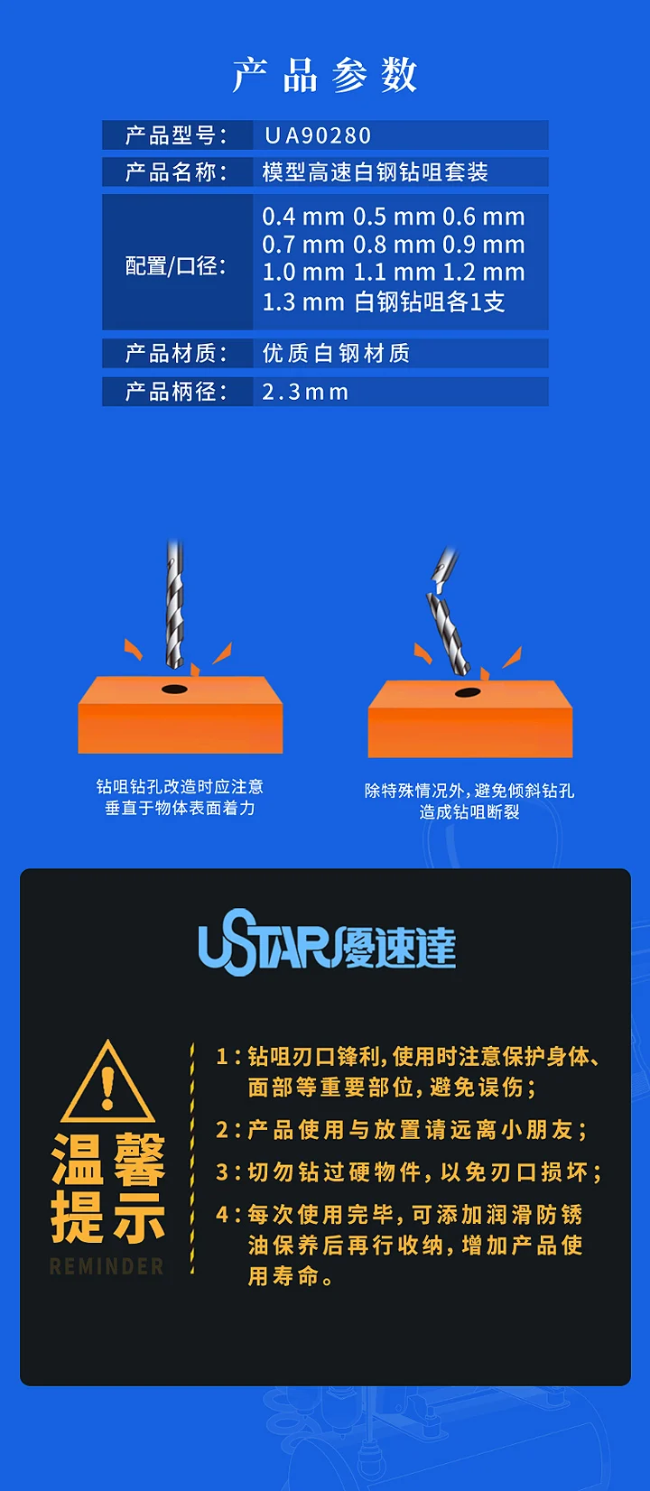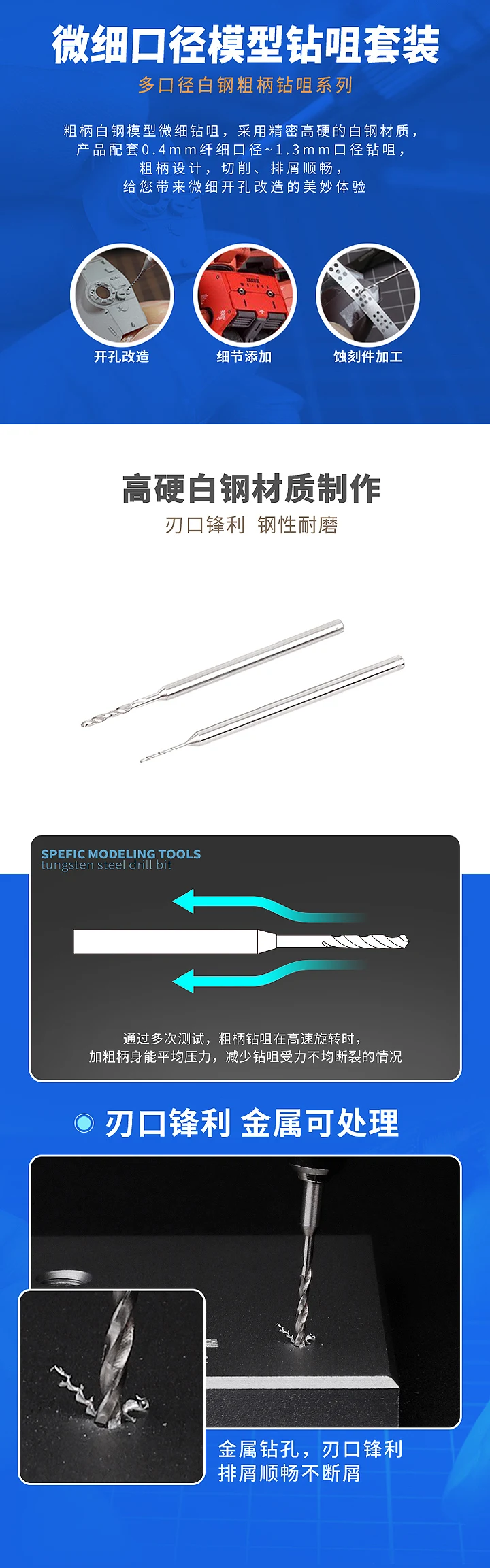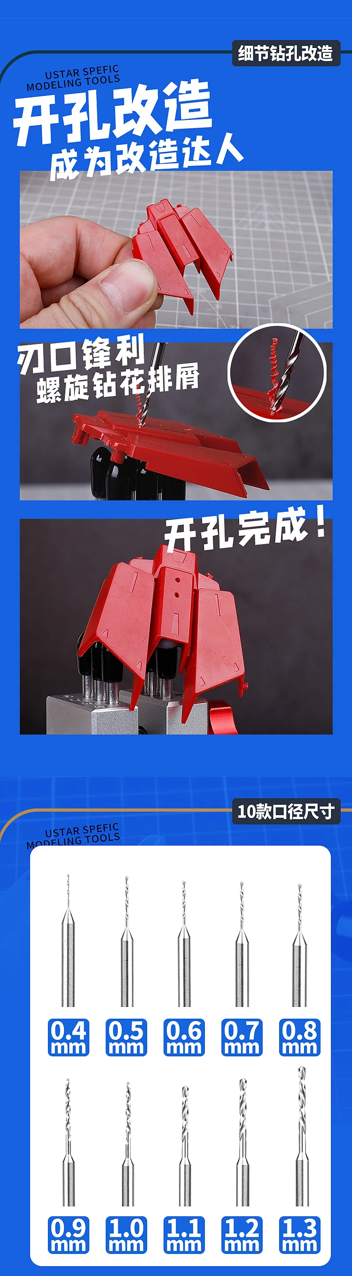 Сверла стальные Ustar 90280, белые, 0,4 1,3 мм (диаметр хвостовика 2,3 мм) для моделирования, моделирования, хобби