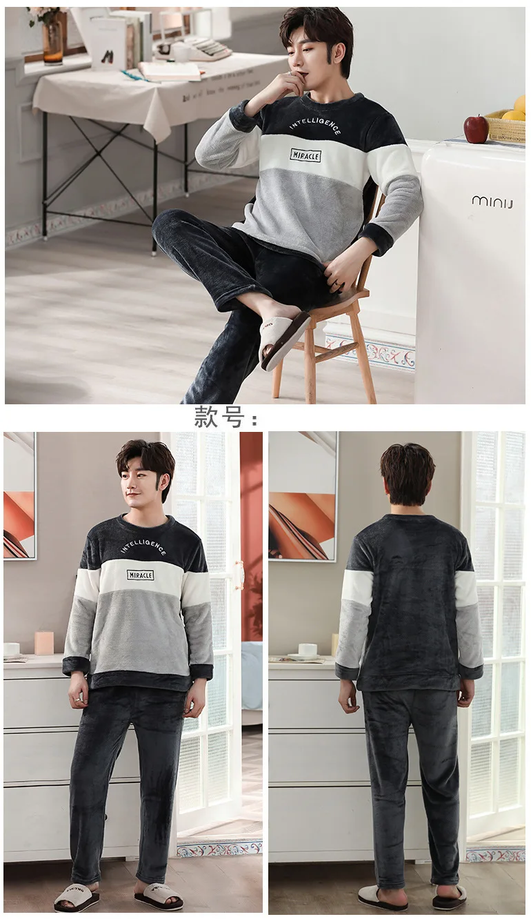 Плотный теплый фланелевый пижамный комплект, Мужская зимняя Свободная Домашняя одежда с длинными рукавами и мультипликационным принтом для отдыха, осенняя свободная Мужская одежда для сна, Топ