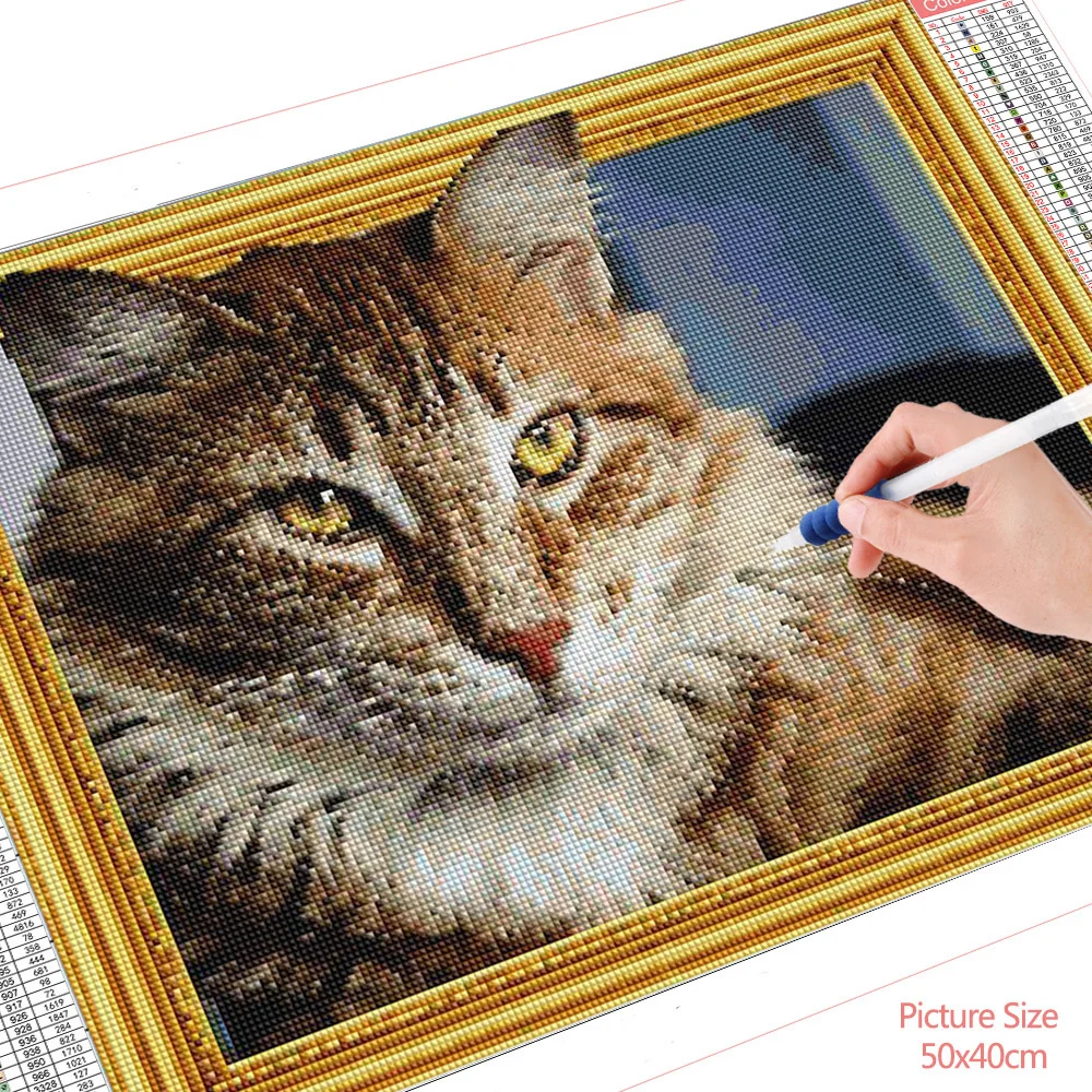 Алмазная вышивка HUACAN с квадратнымикруглыми стразами, мозаика в виде кошки, животное, вышивка крестиком, домашний декор, хобби