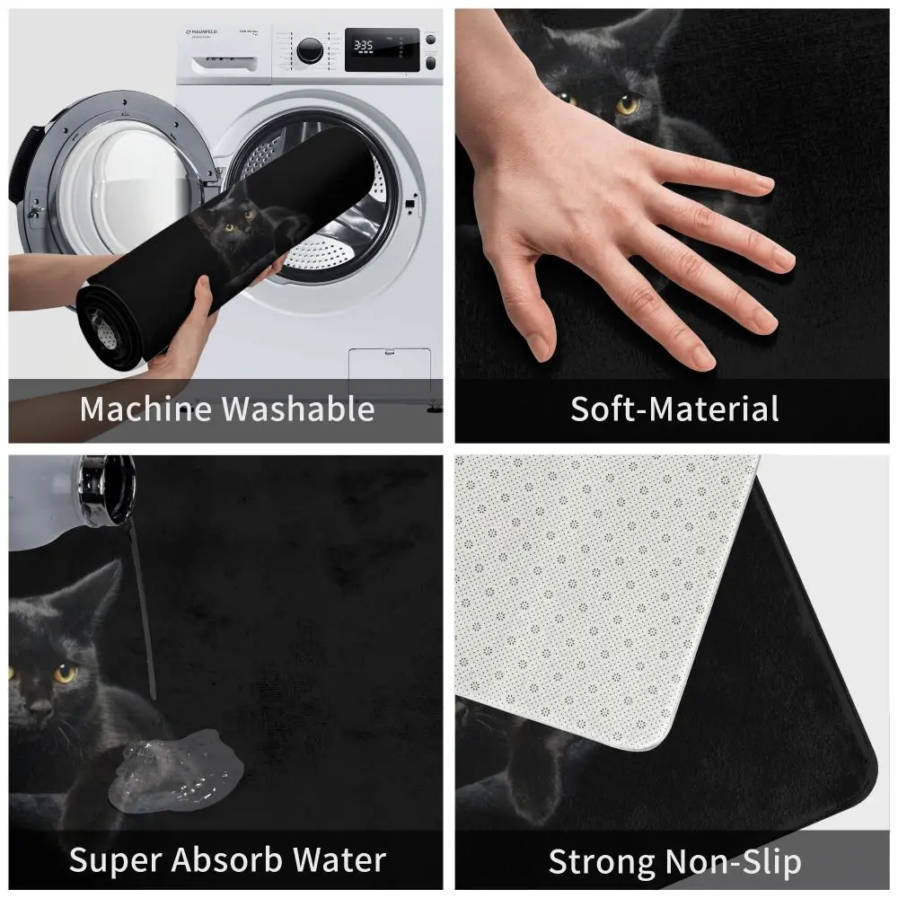 Напольный коврик с изображением черной кошки, нескользящий ковер из полиэстера, для ванной, кухни, спальни, 40 х60