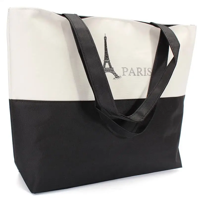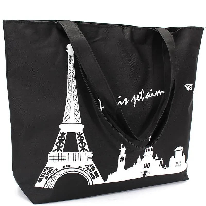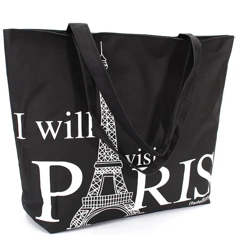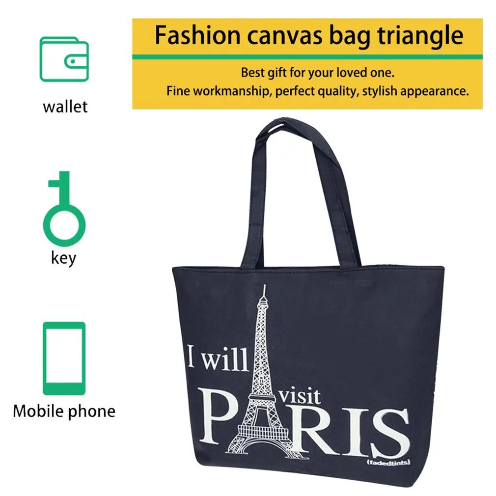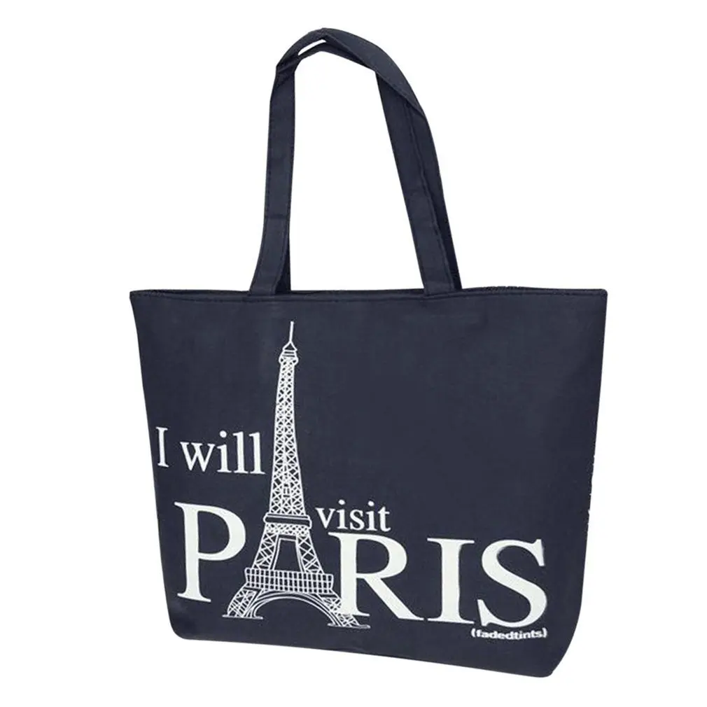 Большая женская Холщовая Сумка На Молнии, шоппер с принтом Эйфелевой башни в Париже для покупок, пляжный Повседневный тоут для девушек
