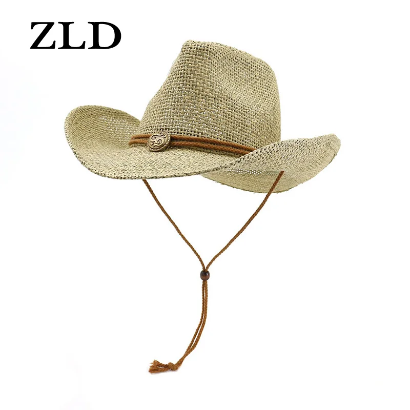 ZLD ковбойская соломенная шляпа, лучшая пляжная шляпа для улицы, солнцезащитный козырек для мужчин и женщин, ретро летняя Абсорбирующая ковбойская шляпа с широким покрытием