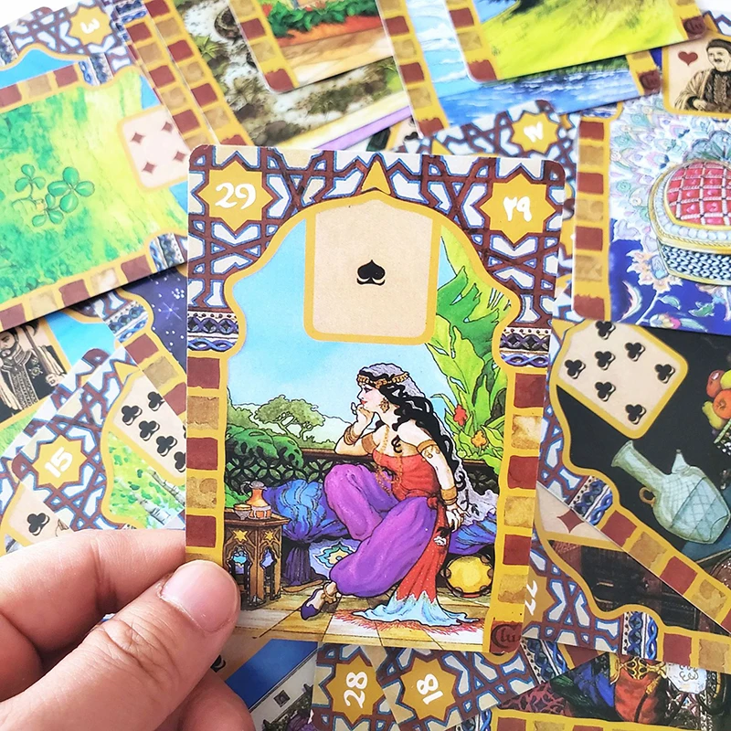 Мега быстрая доставка. Карты оригинального размера. Тоньше чем оригинал. Не глянцевые, больше матовые. Есть инструкция, тонкая книжечка на английском, немецком,итальянском, испанский, французкий, португальский. Значения почти не отличаются от Уэйта.