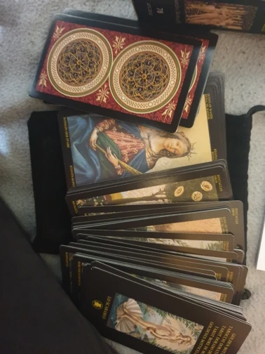 карты не все. отсутсвовали карты Колесо фортуны и колесница. зато было по 2 карты Влюбленные о отшельник. мешочек - жёсткая синтетика. скатерка отвратительного качества. не рекомендую. деньги на ветер.