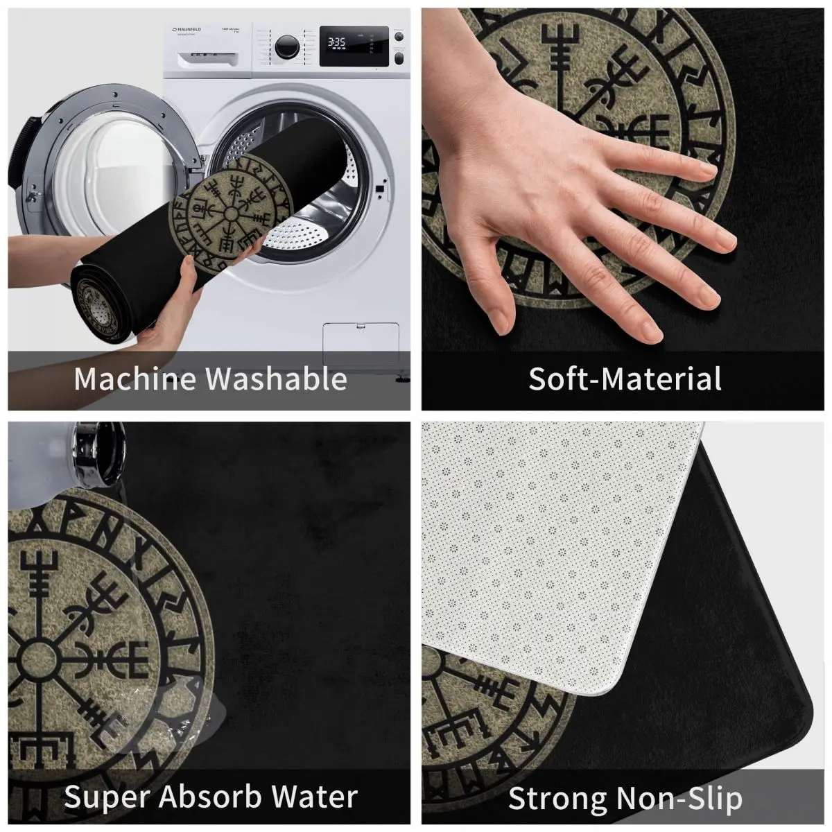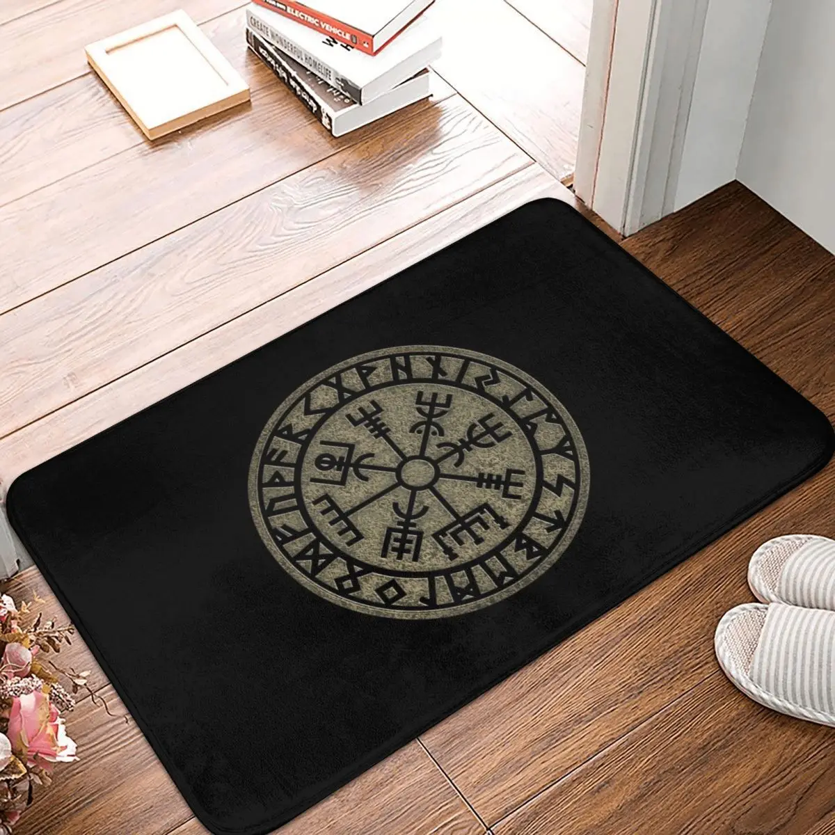 Напольный коврик Vegvisir 40*60, ковер из полиэстера с компасом в стиле викингов и скандинавскими символами, для ванной, кухни, гостиной