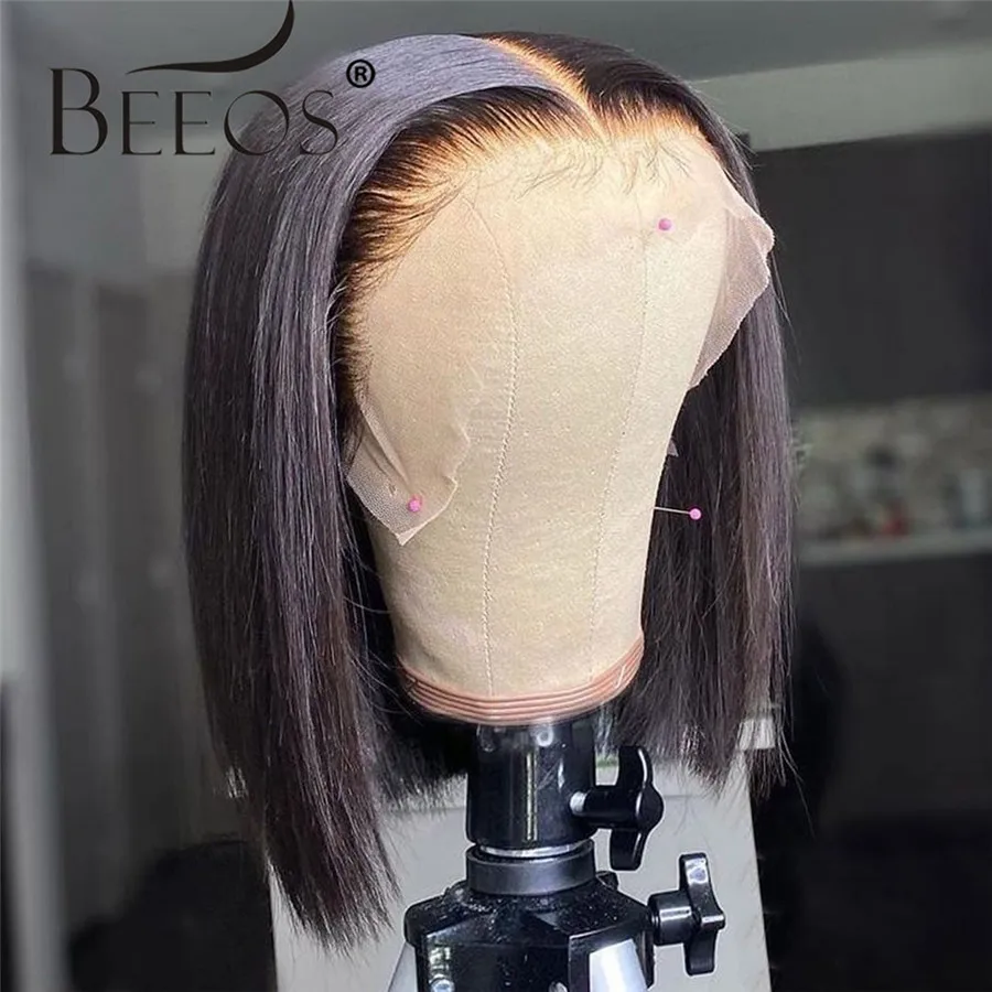 Beeos 180% 13*4 HD парик с фронтальным кружевом, человеческие волосы, прямые, черный цвет, парик с Бобом, человеческие волосы, парики, предварительно выщипанные бразильские волосы Remy