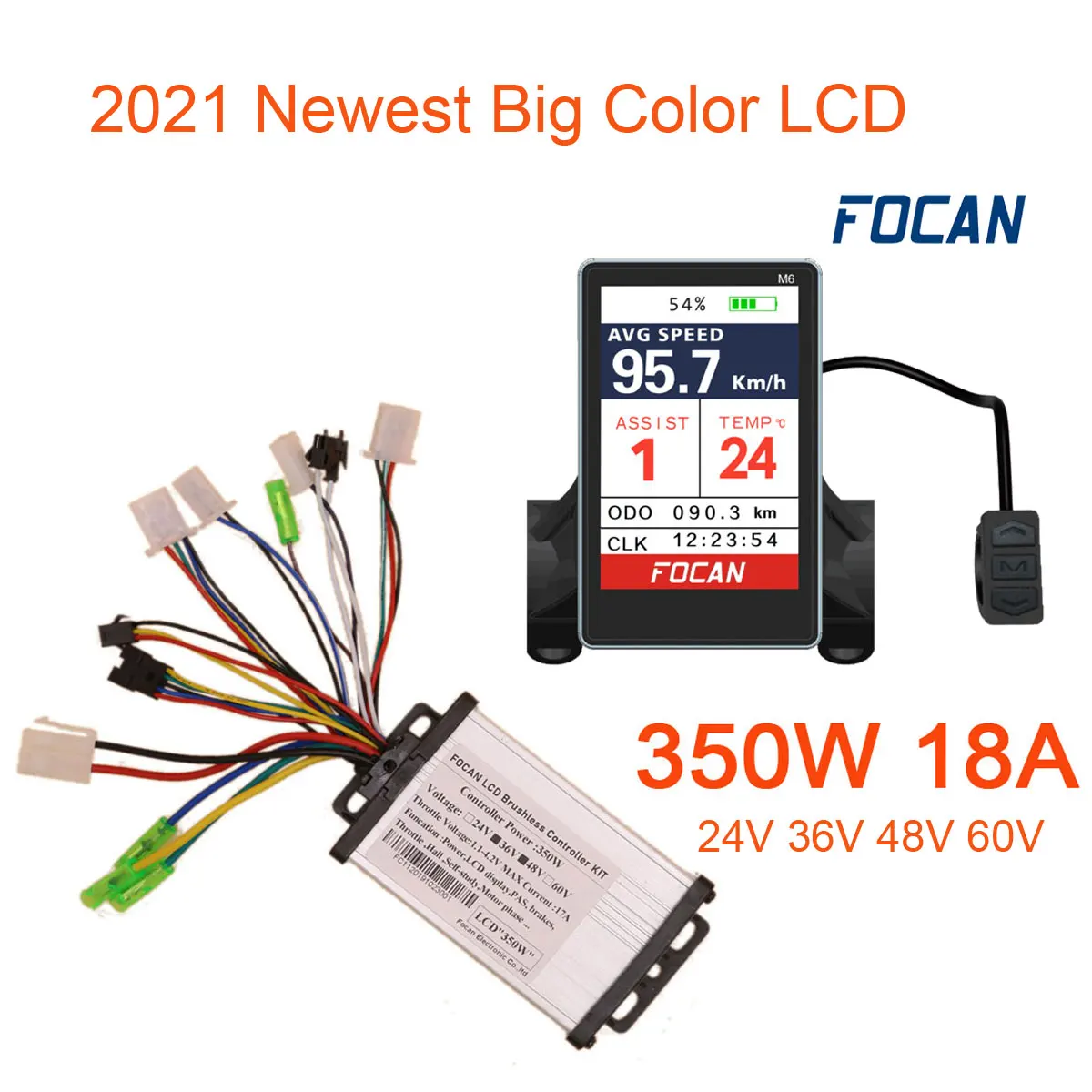 Бесщеточный контроллер для электровелосипеда, большой цветной экран, TFT ЖК-дисплей M6, 24 В, 36 В, 48 В, 60 в, 350 Вт, 18 А, для электровелосипеда, скутера