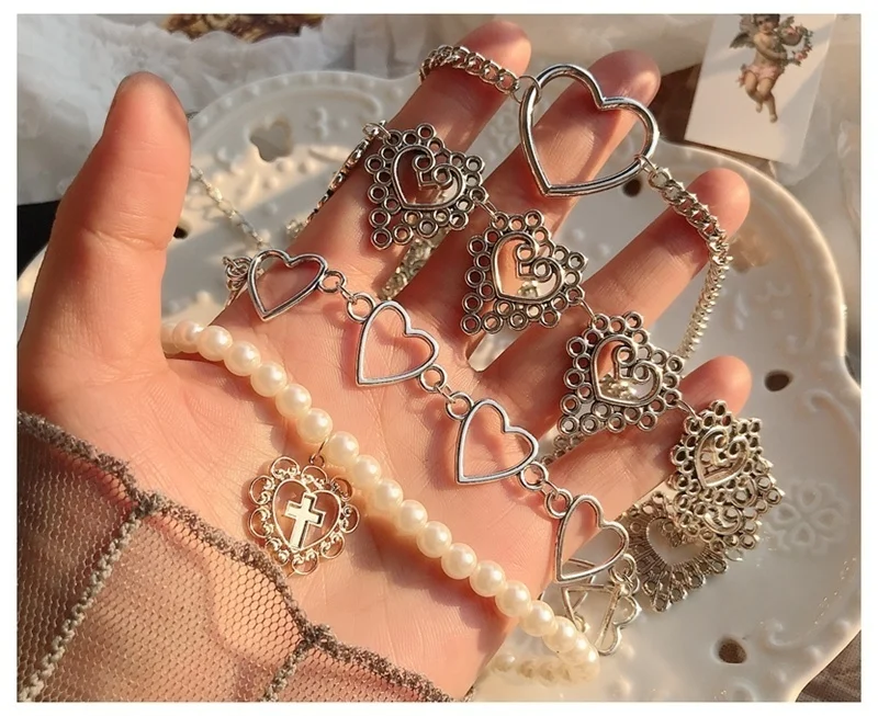 Женское Ожерелье-чокер с цепочкой в форме сердца, украшение с жемчугом в готическом стиле, Ювелирное Украшение для рождественской вечеринки, на Хэллоуин