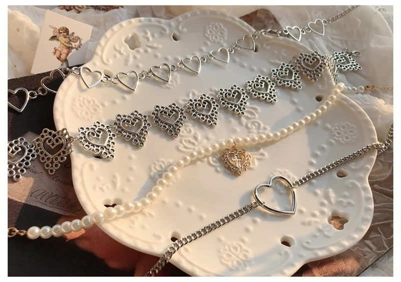 Kpop Сердце цепочка колье для женщин воротник гот колье эстетическо...