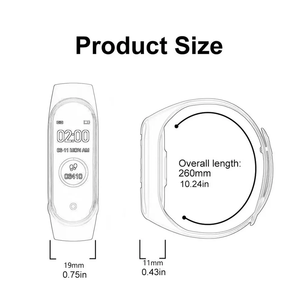 Смарт-часы M4 с цветным экраном 0,96 дюйма, спортивный браслет, мониторинг здоровья, трекер сна, водонепроницаемый браслет с датчиком движения