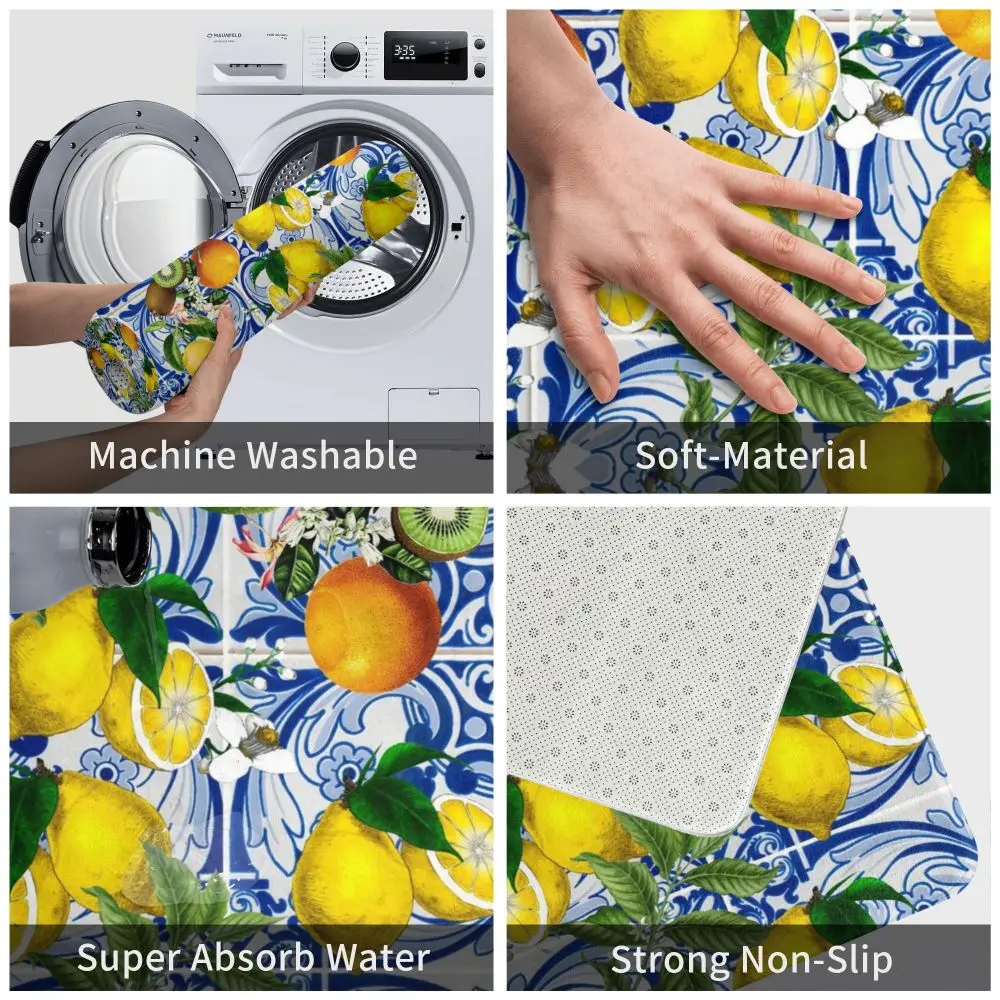 Средиземноморский лимонный подстилка, придверный коврик, ковер, коврик из полиэстера, противоскользящий напольный декор для ванной, кухни, 40x60