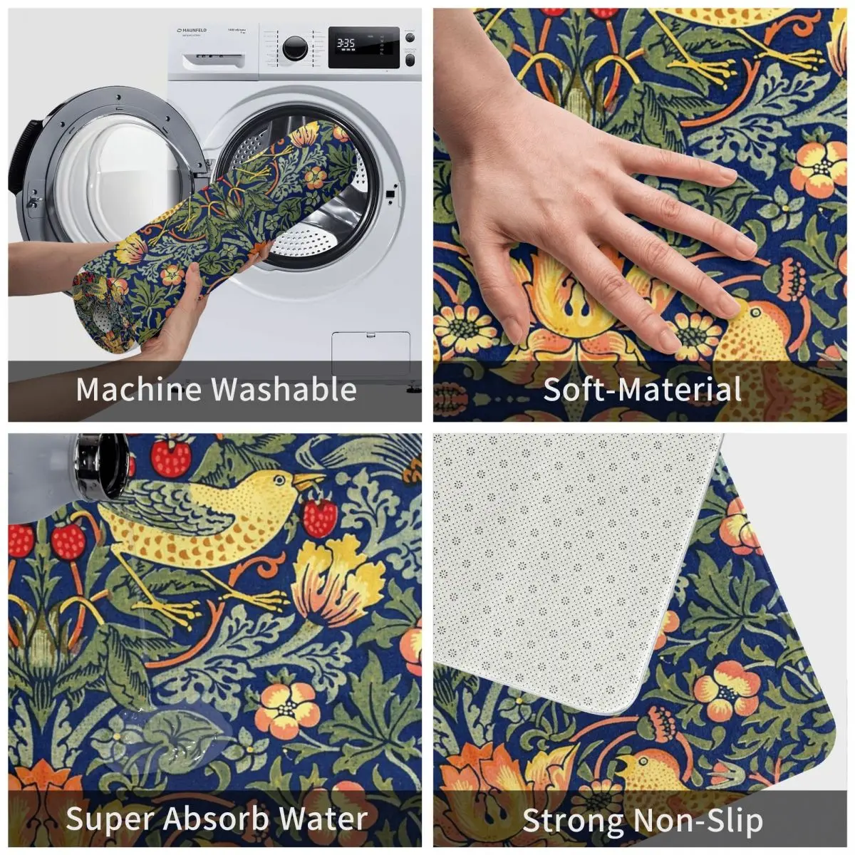Вильям Моррис, Придверный коврик с клубничным принтом, коврик, ковер из полиэстера, нескользящий напольный декор для ванной, кухни, гостиной, 40x60