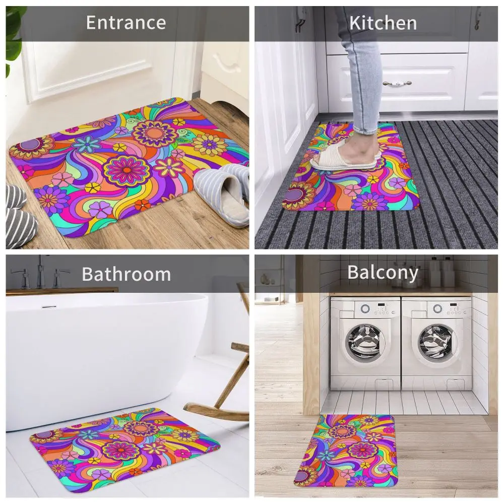 Groovy Psychedelic Flower мощный коврик, ковер, коврик, ковер из полиэстера, противоскользящий напольный декор для ванной, кухни, спальни 40*60