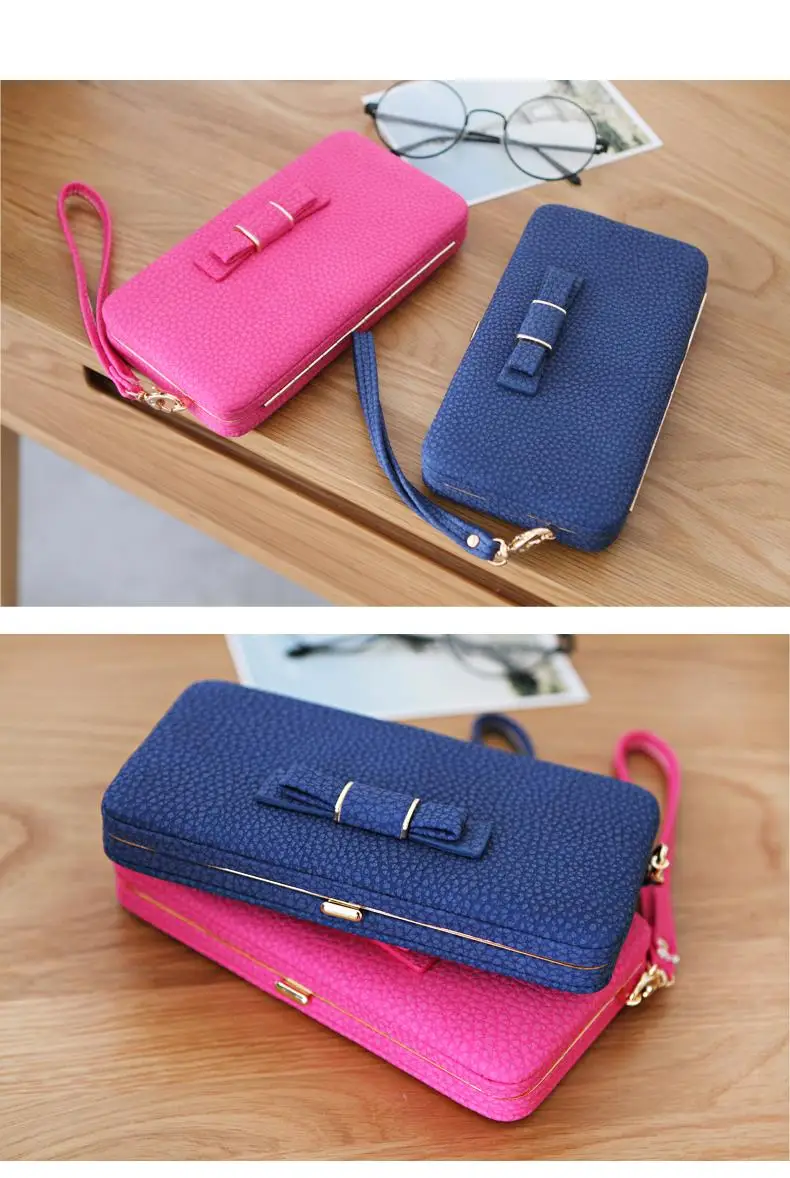 Новые модные кошельки большой емкости, Женский кошелек с бантом, для мобильного телефона, Длинный кошелек с карманом, 2021