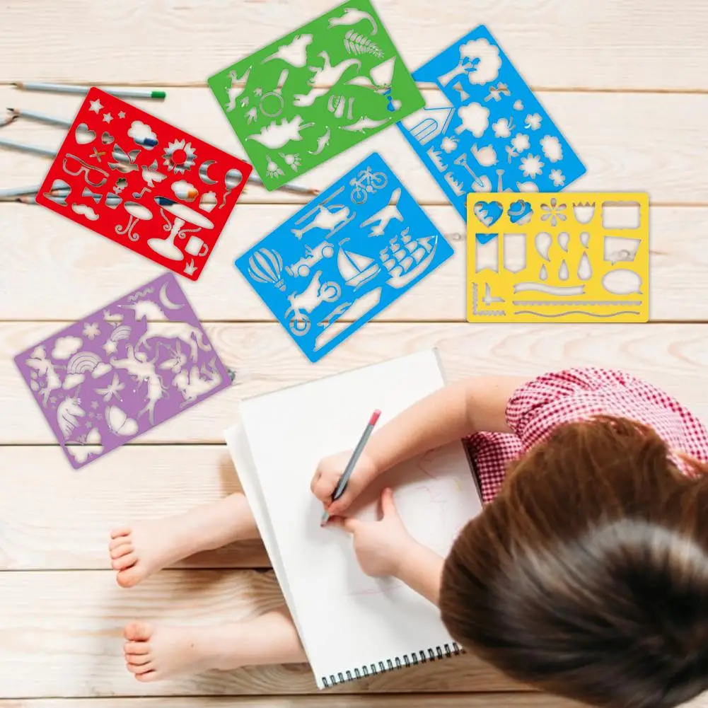 Более 300 различных узоров пластиковых трафаретов помогают улучшить воображение детей и практическую способность.