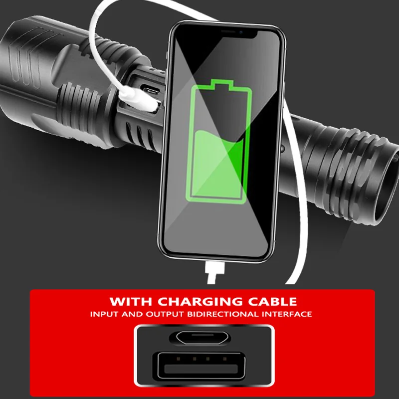 Модель лампы: XHP90.2 LED/XHP100Материал линз: оптические линзыРабочая передача: 5 передач (сильный, средний, слабый, быстрый мигание, медленное мигание)Размер изделия: 16,7x4,6x3,5 см/19x4,6x3,5 см (длина после масштабирования)Применимые батареи: 26650x 1/18650x 1/AAAx3 (без батарей)Класс водонепроницаемости: IPX4Мощность продукта: 35 ВтМатериал изделия: алюминиевый сплавРабочее напряжение: 3,7 вЦвет изделия: черныйПрямая зарядка: Прямая зарядка через USB (с выходным и входным двойным интерфейсом)Цифровой зум: Телескопический фокусПоложение переключателя: Средний кнопочный переключательДисплей питания: 4 светодиодных индикатора, каждый свет представляет 25% мощностиВес нетто продукта: 234 г (один фонарик)