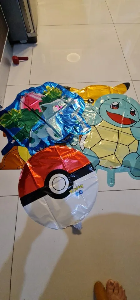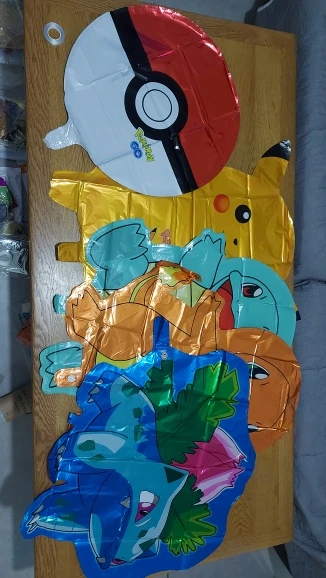 Очень красиво, точно соответствует описанию. Быстрая доставка. К сожалению, один из них был неисправен (ивизавр), и каждый раз, когда он был надут, он слил гелий, поэтому в конце концов мы использовали только другие. Они очень понравились, дети дергались, бросали, били их весь день, и они сопротивлялись. Я рекомендую их.