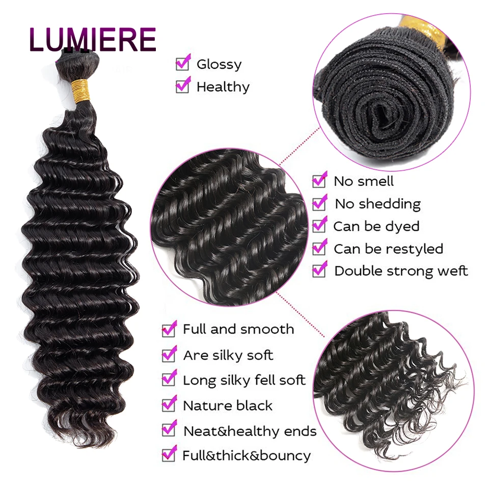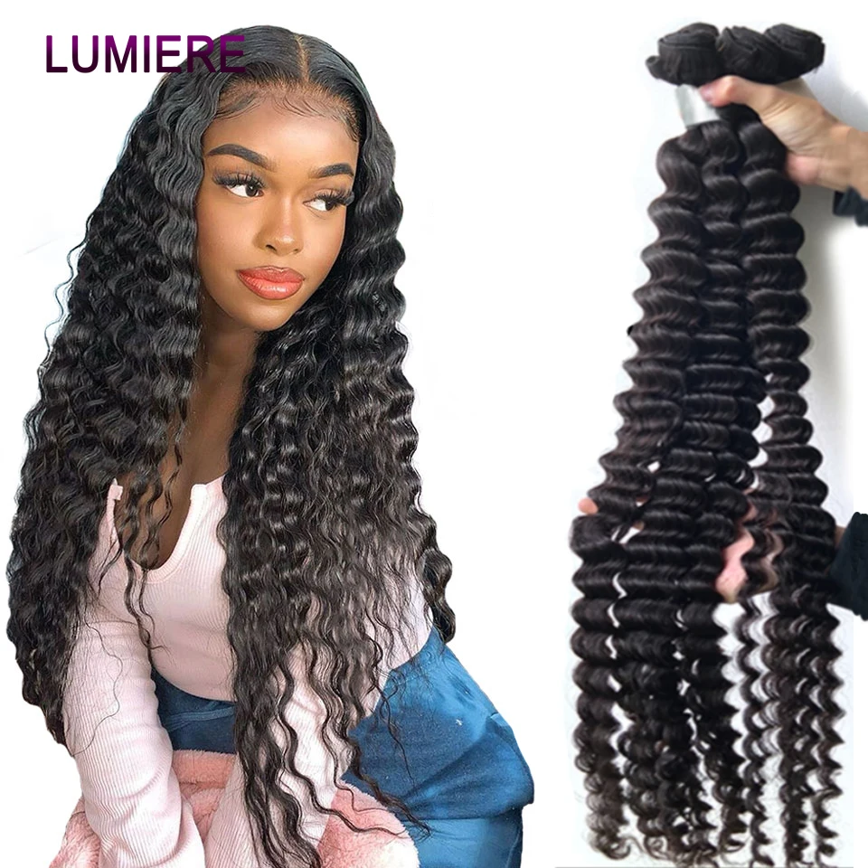 Волосы Lumiere 28, 30, 32, 40 дюймов, пучки с глубокой волной, бразильские пучки волос, натуральные волосы для наращивания, 3, 4 пупряди, толстые волосы без повреждений