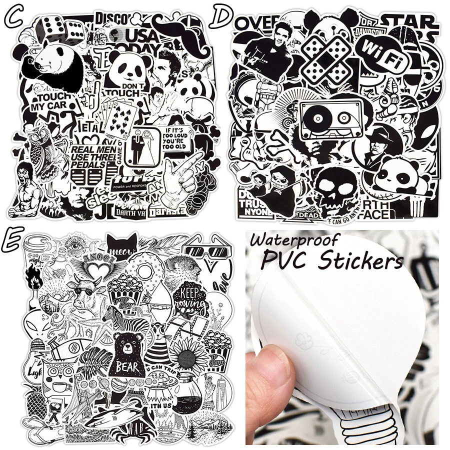 50 шт. черно-белые наклейки JDM для детей, взрослых граффити, классные водонепроницаемые наклейки для ноутбука, автомобиля, скейтборда, шлема, чемодана