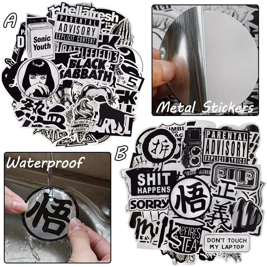 Наклейки Металлические черно-белые, стикер в стиле граффити, 50 шт.