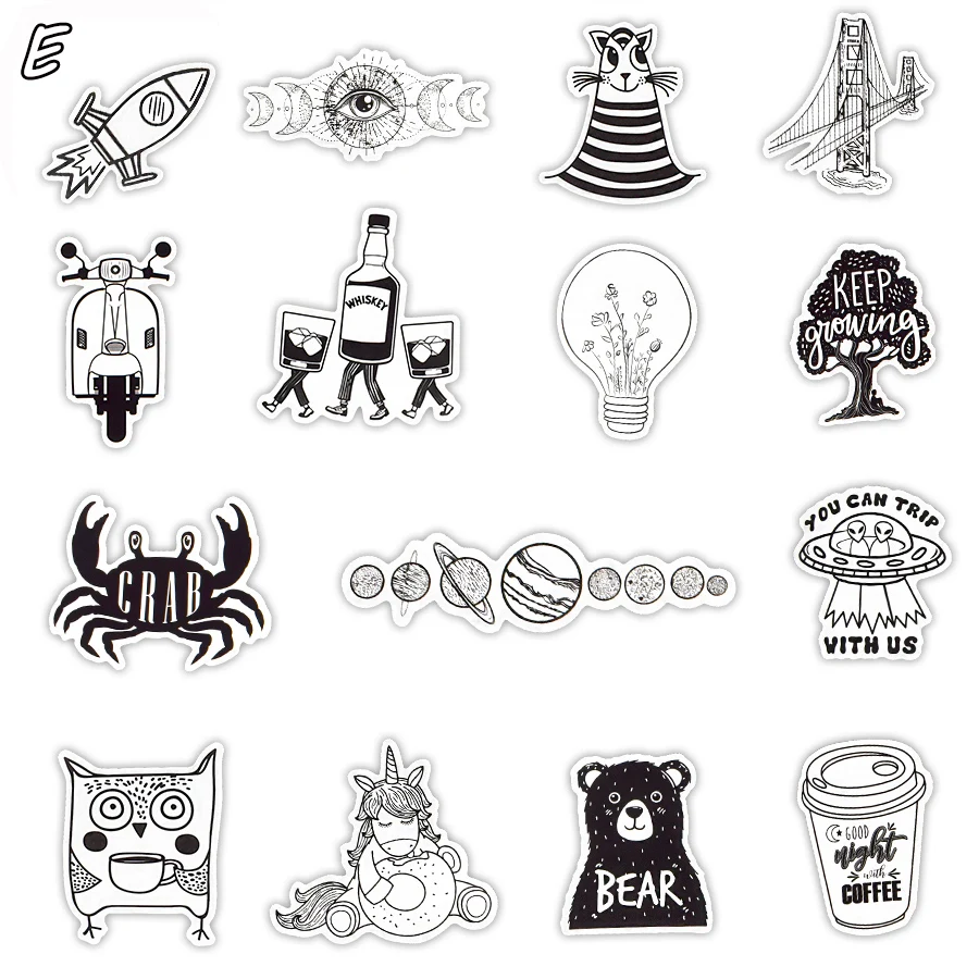Посылка включает: ABCDE: 50 черно-белых наклеек + подарок (5. 10 случайных неоновых наклеек). F: 10 шт. случайных неоновых наклеек. Не повторяется.
