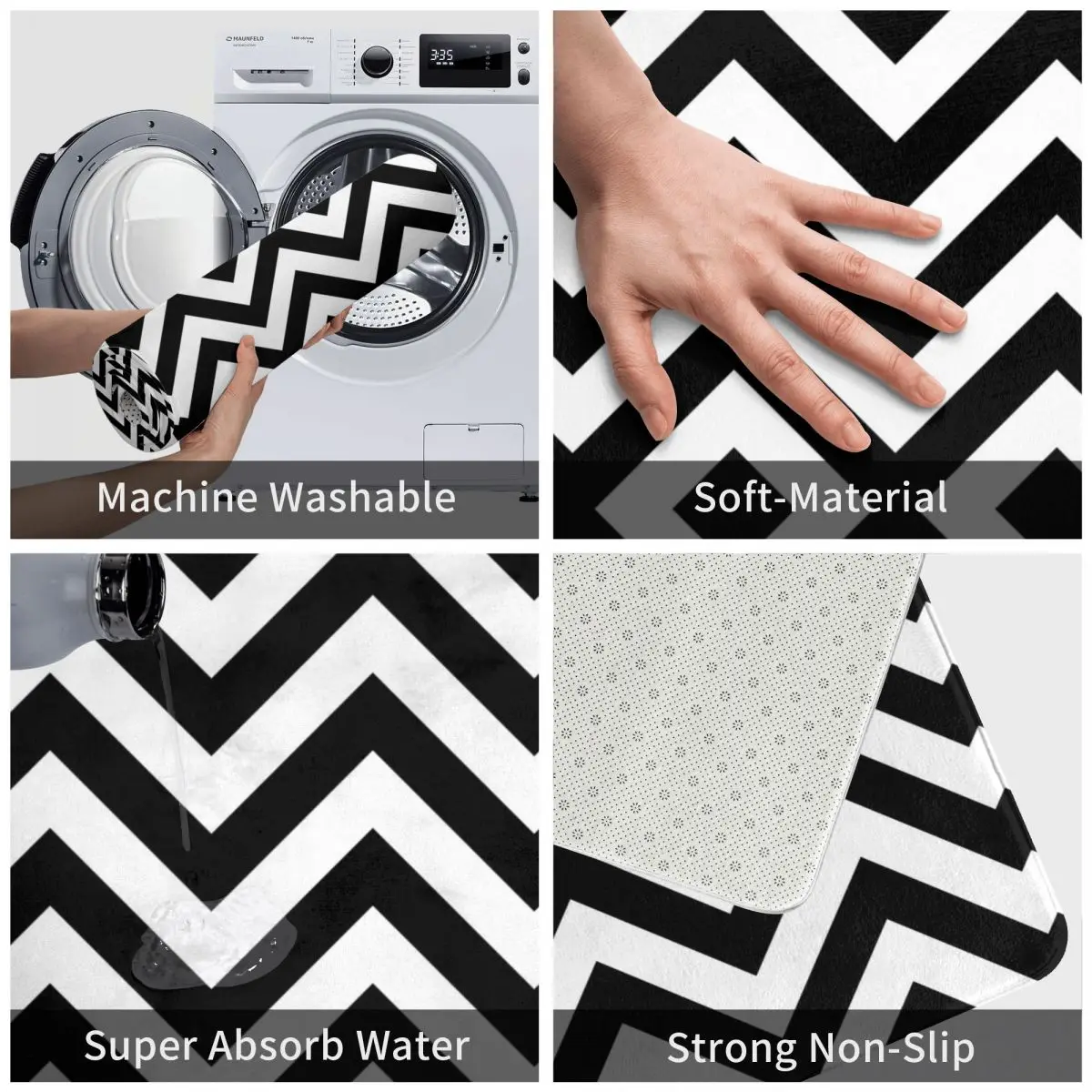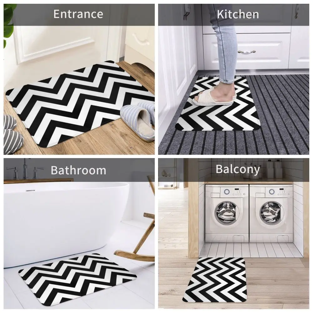 Черный и белый коврик Zigzags с рисунком, ковер, коврик, ковер из полиэстера, нескользящий напольный Декор для ванной, кухни, балкона, 40x60