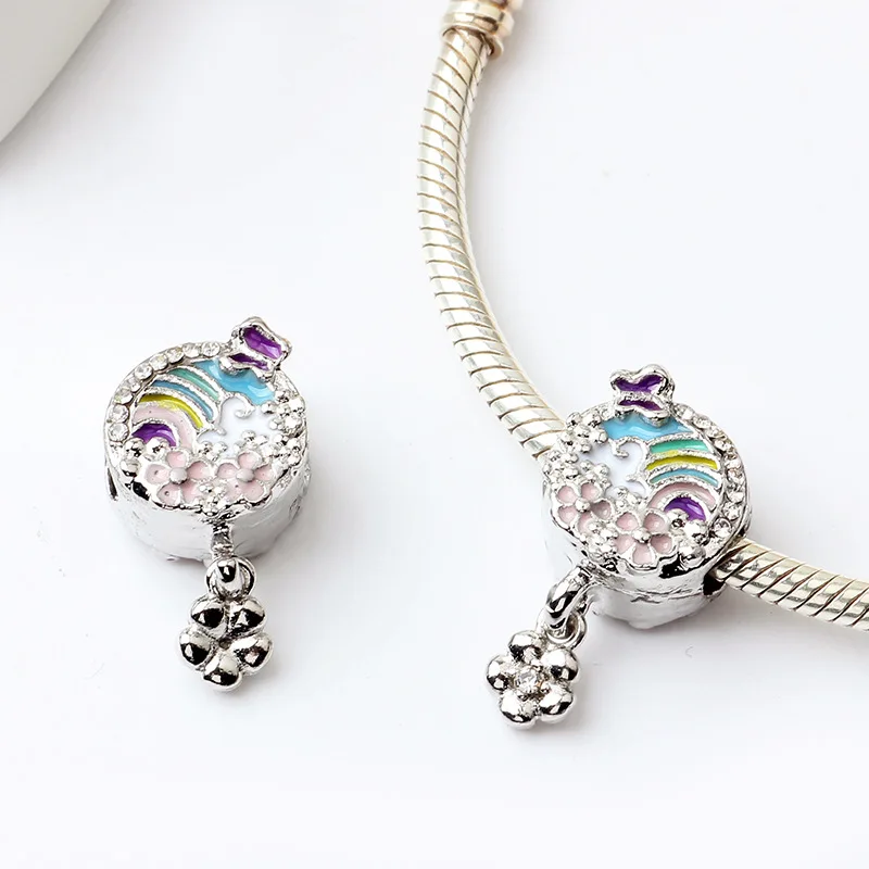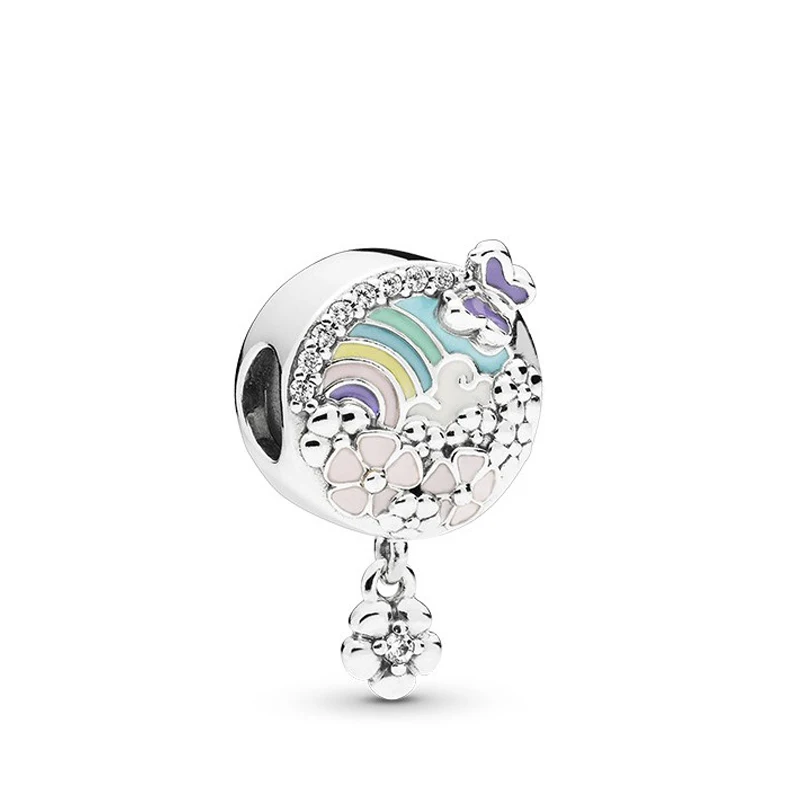 Красочная эмалированная подвеска в виде цветка подходит для оригинального браслета Pandora с подвесками Радужные облака бабочки бусины DIY ювелирные изделия для женщин Pulsera
