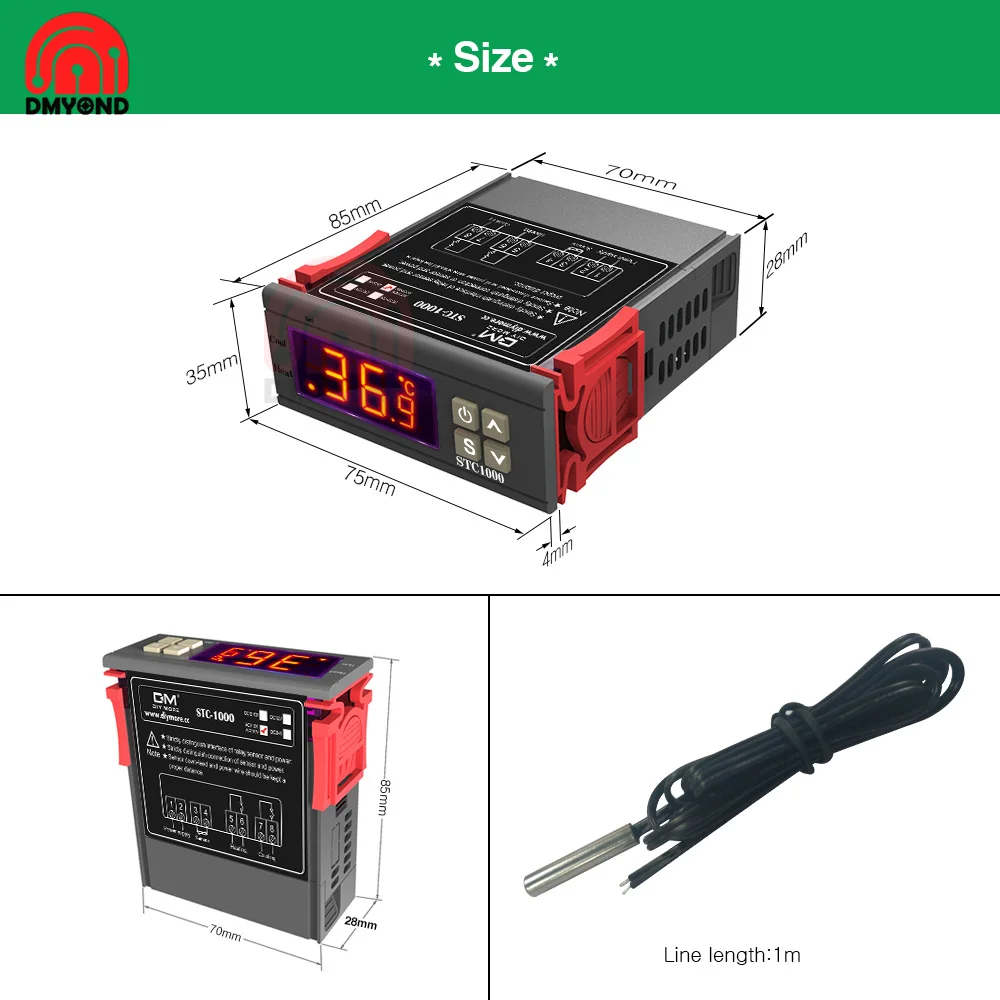 Цифровой регулятор температуры STC-1000, термостат 12 В 24 В 220 В STC1000, терморегулятор для инкубатора с реле нагрева и охлаждения 10 А