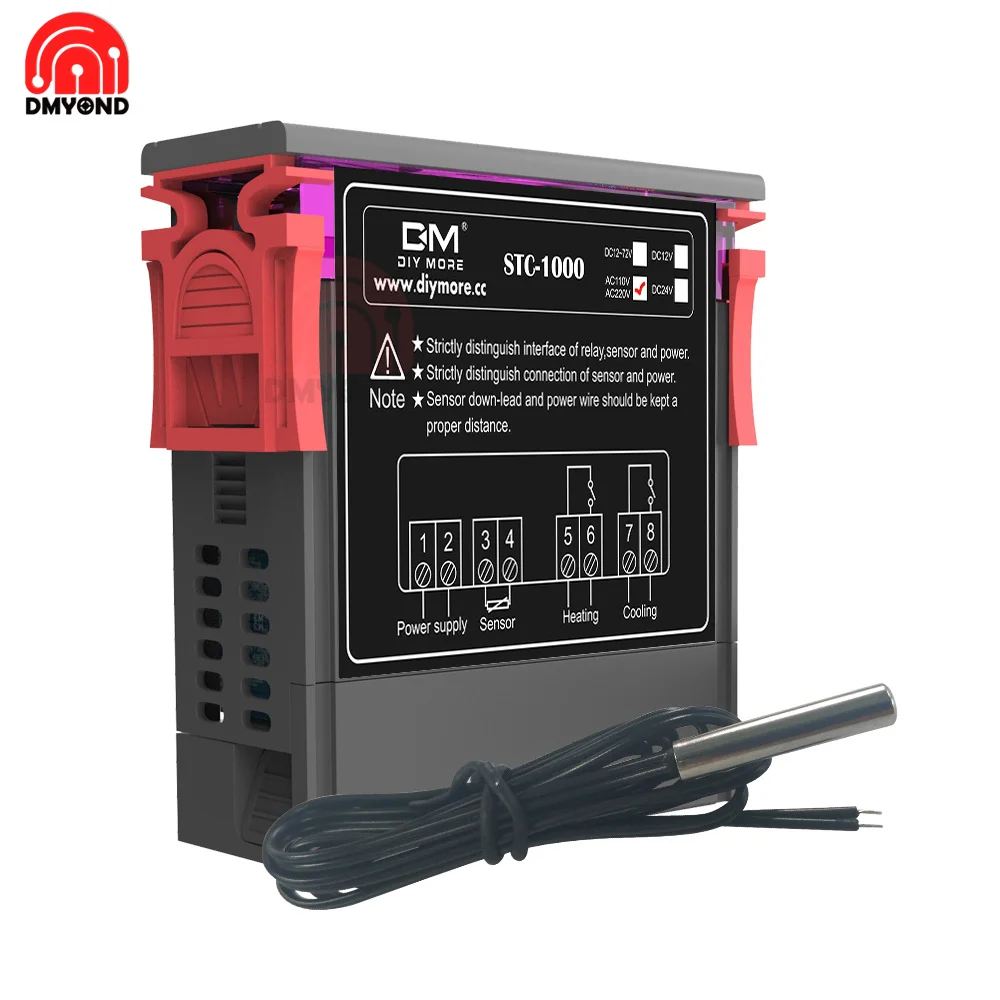 STC1000 одиночный дисплей термостат DC12-72V, AC110-220