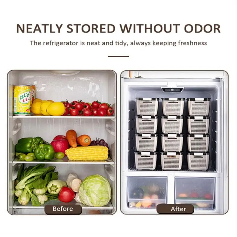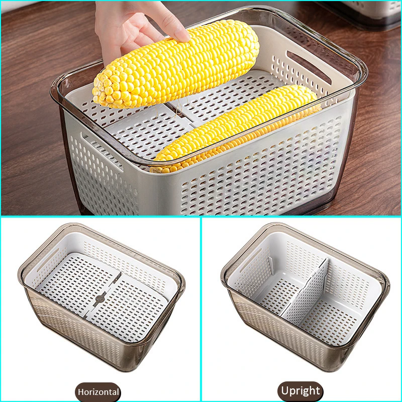 Разделенный дизайн-эти контейнеры для хранения продуктов поставляются с регулируемыми складывающимися перегородками для секретного хранения; Могут хранить большинство видов фруктов и овощей, таких как салат, капуста, клубника, Черника и т. д., экономия пространства, чистый и без запаха.