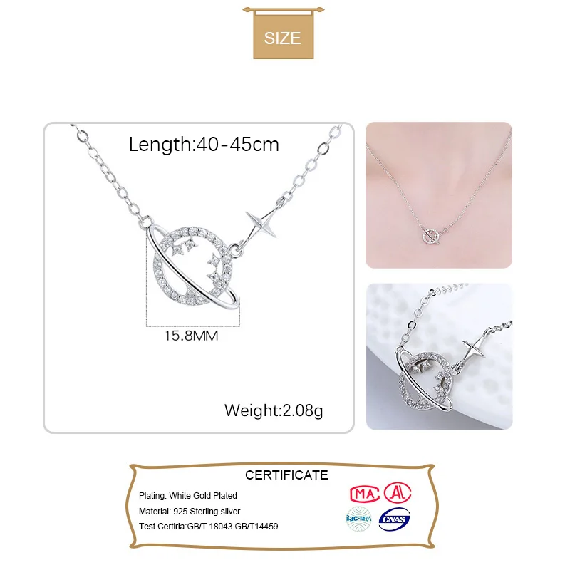 TrustDavis Настоящее Стерлинговое Серебро 925 пробы модная планета Вселенная CZ ожерелье до ключиц для женщин ювелирные изделия для свадебной вечеринки DA2251
