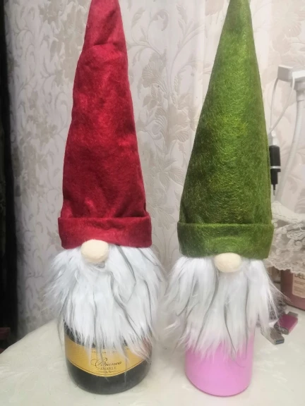 прикольные чехлы на бутылку, но думаю бутылку закроет полностью , промерить пока не начем )) качественно сшиты и мягкий материал . рекомендую для оформления стола !