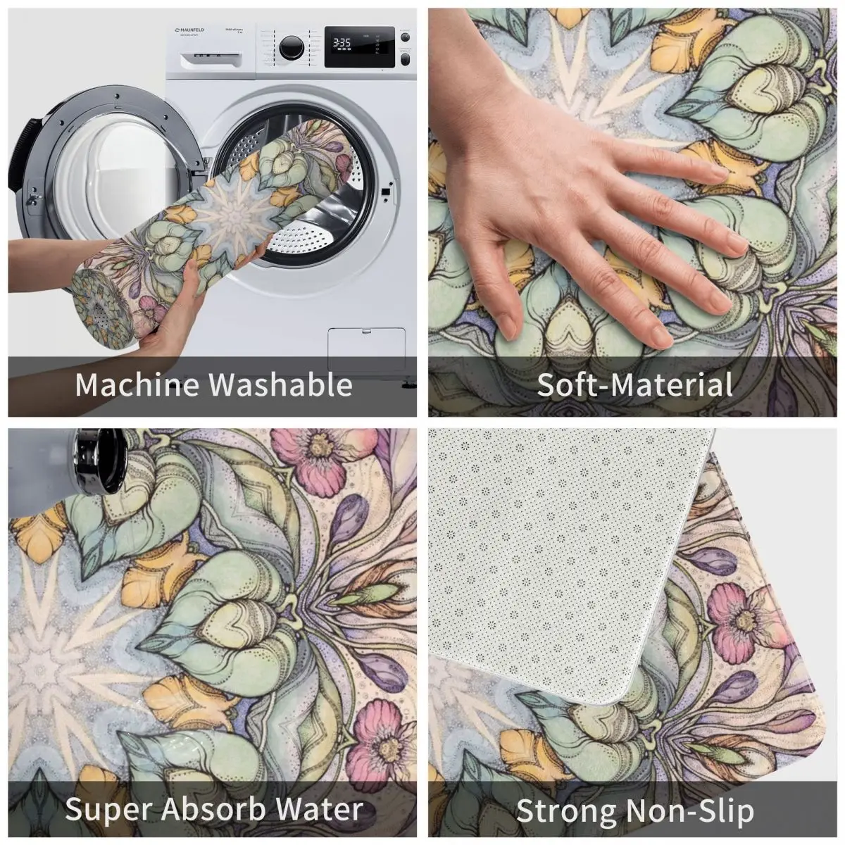 Можно использовать под столом и на кухне, гостиной, балкона, ванной комнаты, прихожей, ванной, спальни, прохода, входа, в помещении, на открытом воздухе, детской площадке, прикроватной зоне, татами, прачечной