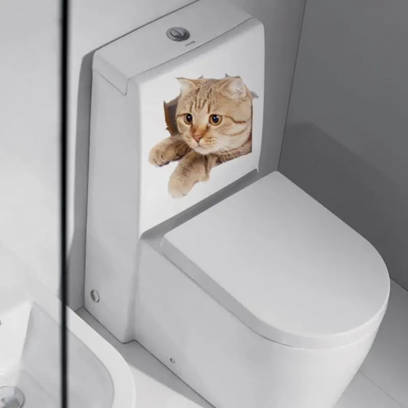 3D наклейки в виде кота, фотообои, наклейки на окно, спальню, ванную комнату, сиденье для ванной, кухонные аксессуары, наклейки на унитаз в виде кота, 1 шт.