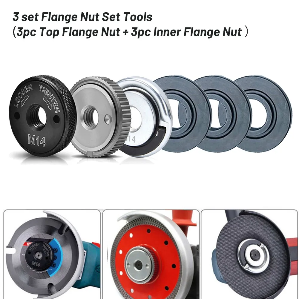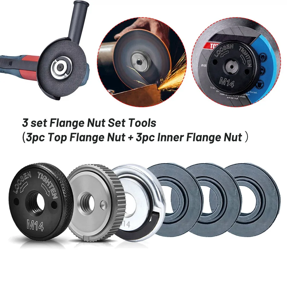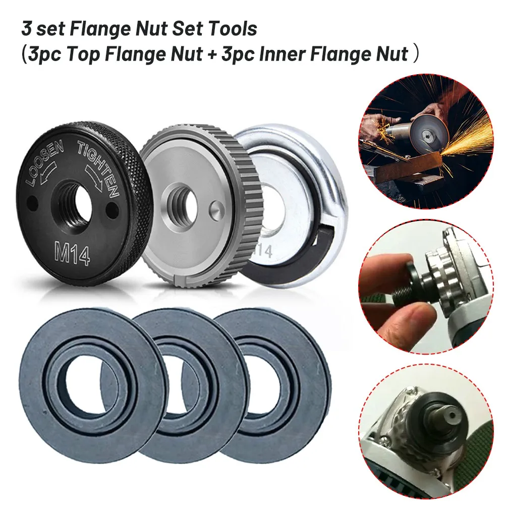 * Широкий спектр применения: Зажимная гайка подходит для всех угловых шлифовальных машин с интерфейсом M14 на рынке, для DeWalt, Bosch, Metabo, hilti и конечно же для всех не упомянутых угловых шлифовальных машин, таких как алмазные отрезные диски, шлифовальные диски, шлифовальные диски в форме чашек, Алмазные пластины и другие типы шлифовальных кругов.