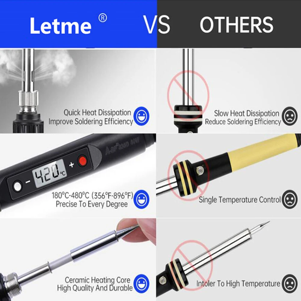 Примечания:Штепсельная Вилка европейского стандарта --- Диапазон напряжения: AC220V-240VРазличные наборы приводят к разной цене. И каждый набор имеет соответствующее изображение.Введение продукта: Этот паяльник является 80 Вт сварочным инструментом, который может работать в 180C -480C. Температура может быть скорректирована 1С. Он имеет штепсельную вилку ЕС и США на выбор.Это хороший сварочный инструмент, если вам нравится DIY или нужно сварить в ремонте ПК телефон, мелкие детали.Существует специальная схема термостата для контроля температуры, и вы можете регулировать температуру в соответствии с вашими потребностямиС режимом калибровки температуры: нажмите + и-кнопки одновременно для калибровкиОсобенности: Портативный простой в эксплуатации сварочный инструмент, используемый в ремонте телефона компьютера, ремонте монтажной платы. Идеально подходит для хобби, комплектов, радиоприемников, ноутбуков, компьютеров и электроникиС большим ЖК-дисплеем. Легко читать температуру.Используйте высококачественный внутренний нагревательный керамический нагревательный элемент. Более прочныйМощность: около 80 Вт, паяльник может нагреваться до рабочей температуры в течение 15-20 секунд.Температура может регулироваться 1С. Контроль температуры и регулировка ПИД (пропорциональная-Интегральная-производная) технологияС нескользящей и теплоизоляционной ручкойРазличные цвета и наборы паяльника для клиентов на выбор. Удовлетворить различные потребности.Характеристики: Мощность: 80 ВтНапряжение: 220 В-240 В переменного токаДиапазон температур: 180C-480C( 356F-896F)Дисплей: цифровой ЖК-дисплейЧастота: 50 Гц/60 ГцТемпература: +/-5CСпособ нагрева: внутренний нагревательный керамический нагревательМодель наконечника: 900 мДлина кабеля: 1,4 м/55.12inТип вилки: штепсельная вилка европейского стандарта.Посылка: Вариант: 1 шт. * 220 В (черный/красный) Электрический паяльникВариант: 10 шт./партия * 220 В (черный/красный) Электрический паяльник, как показано на рисункеВариант: 18 шт./компл. * 220 В (черный/красный) Электрический паяльник, как показано на рисунке
