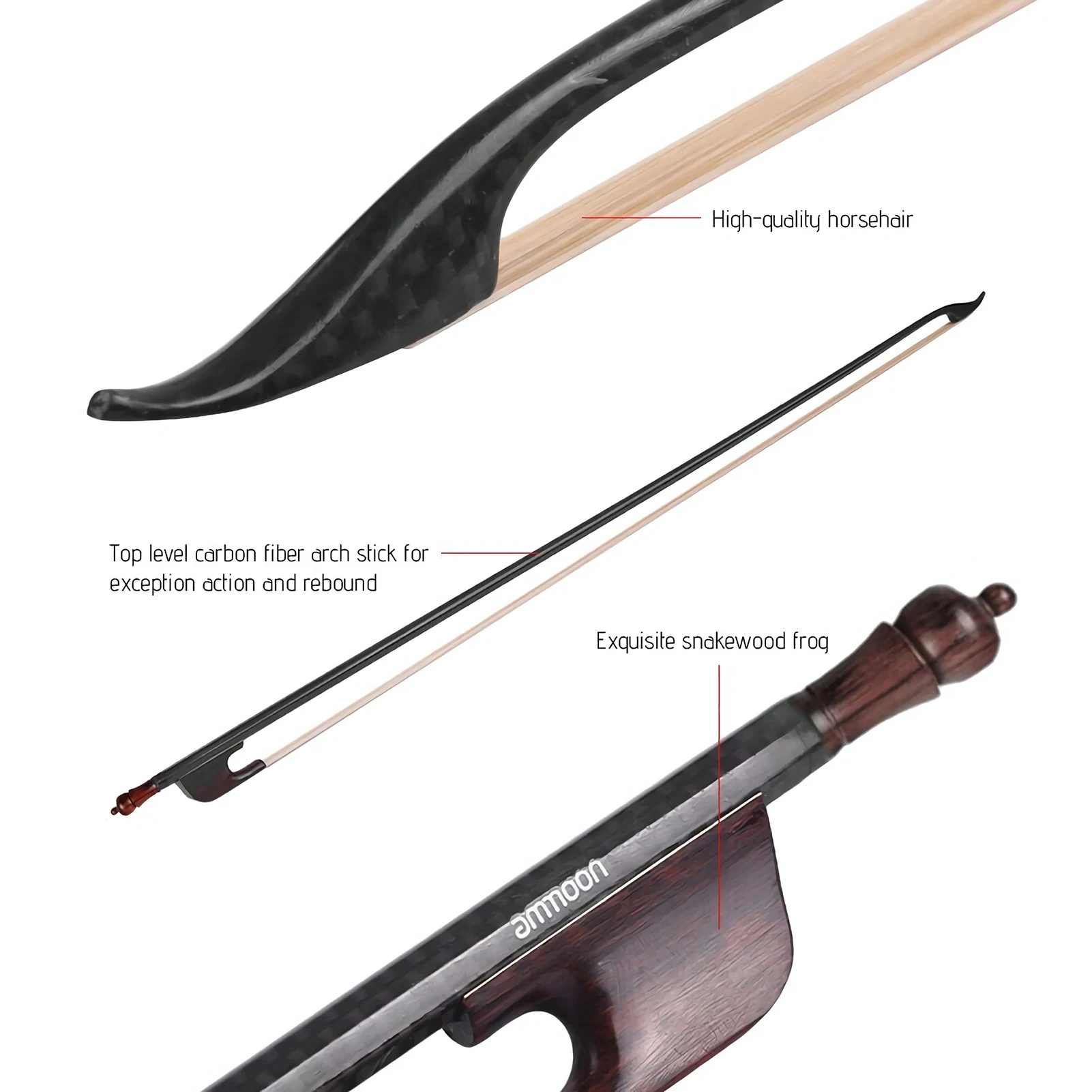Лук для скрипки ammoon в барочном стиле 44, лук для скрипки из углеродного волокна, круглый хорошо сбалансированный струнный инструмент, аксессуары