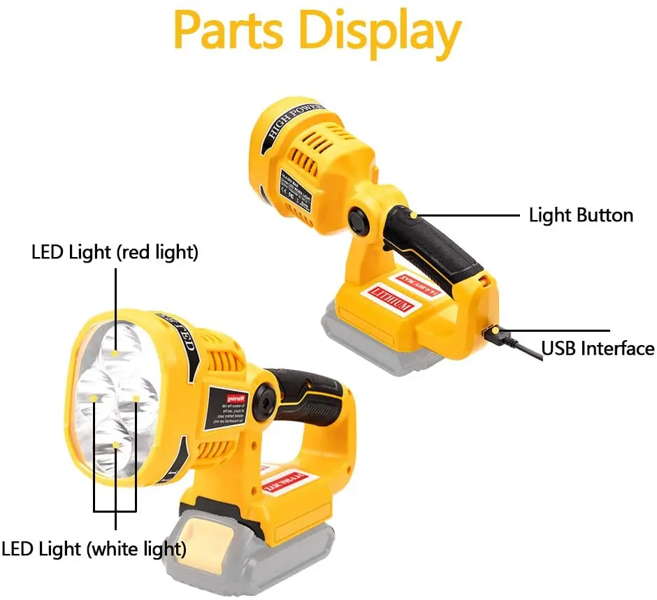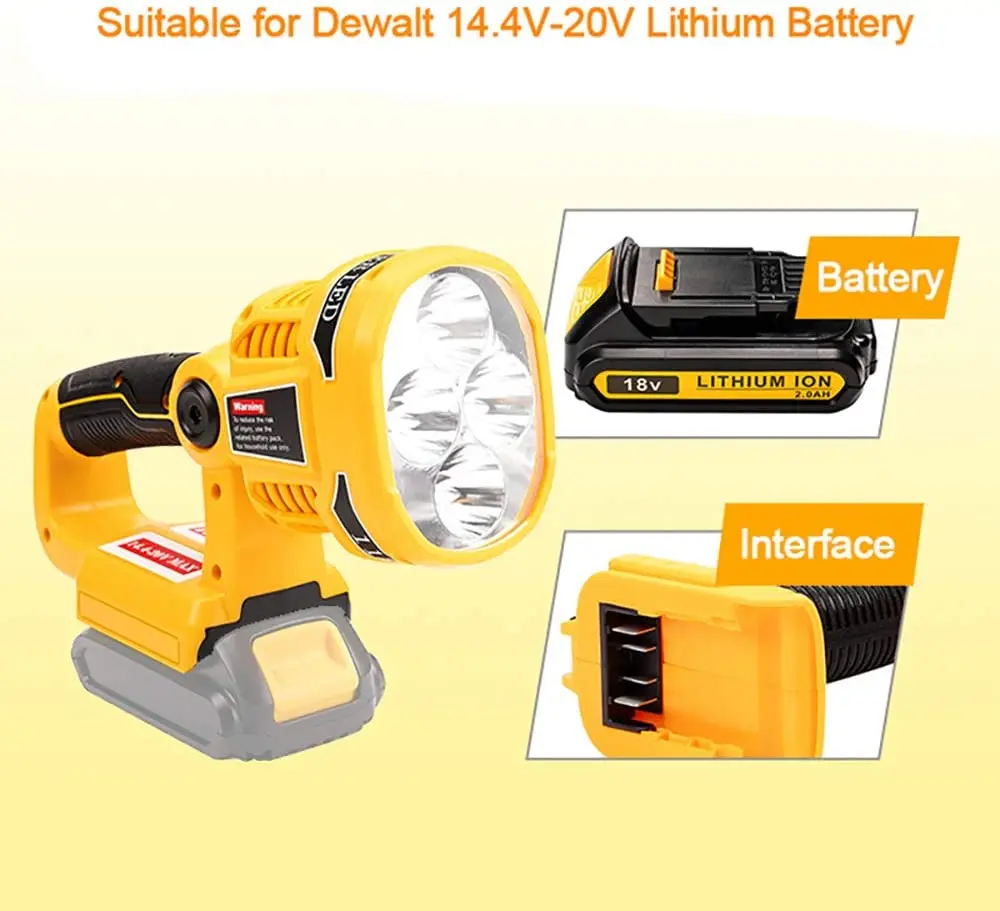 Портативный светодиодный рабочий светильник для Dewalt, 18 в, 20 в, макс., батарея DCB140, DCB200, USB-вспышка для уличных инструментов (без батареи, без зарядного устройства)